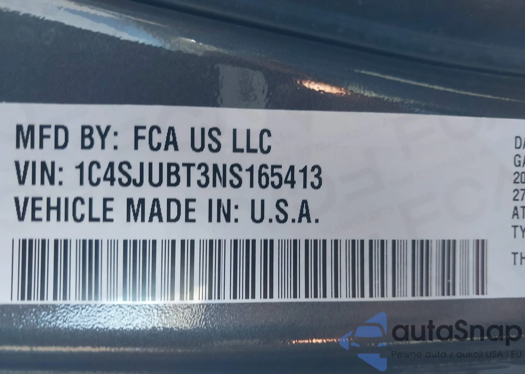 • VIN 1C4SJUBT3NS165413
