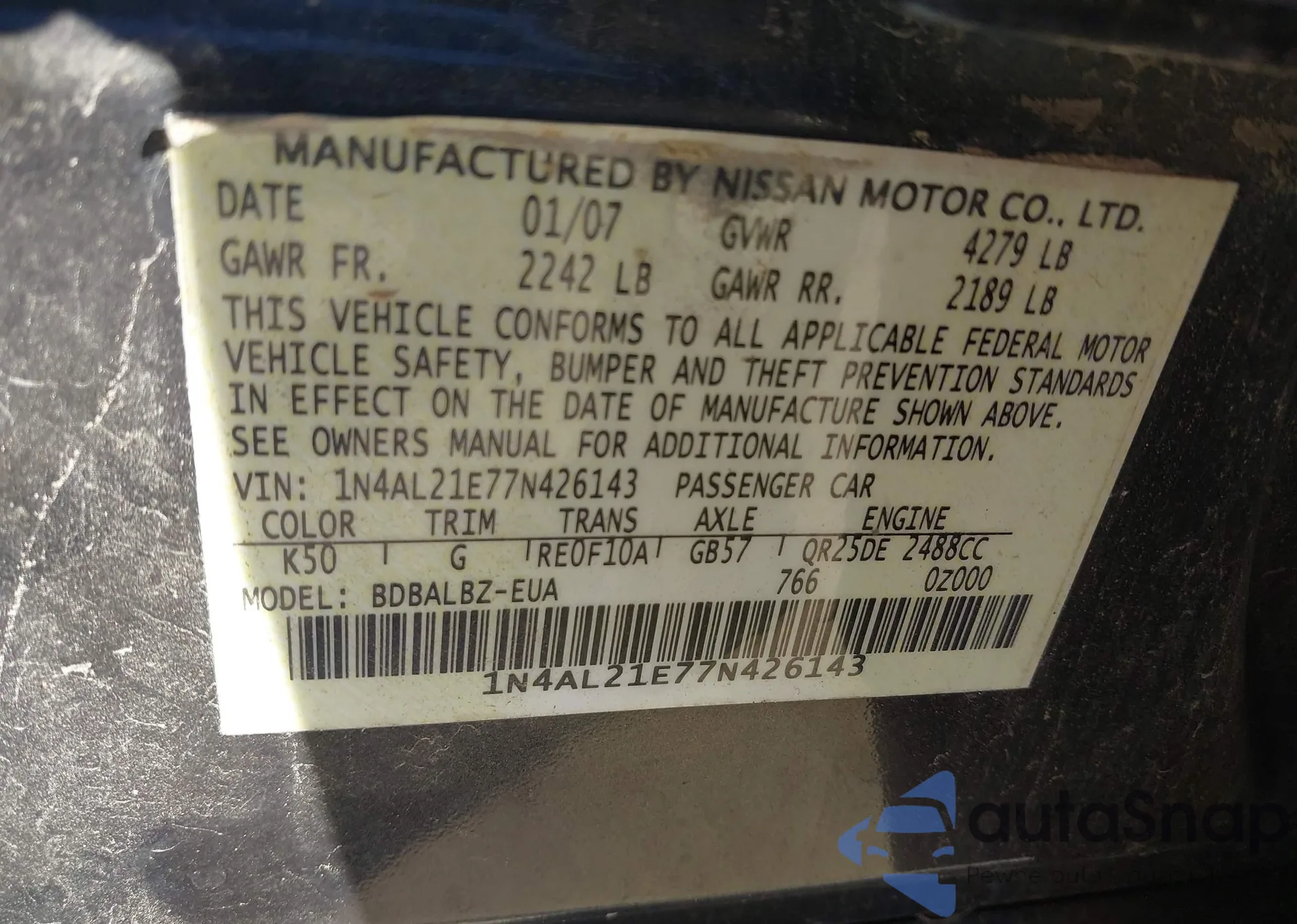 • VIN 1N4AL21E77N426143