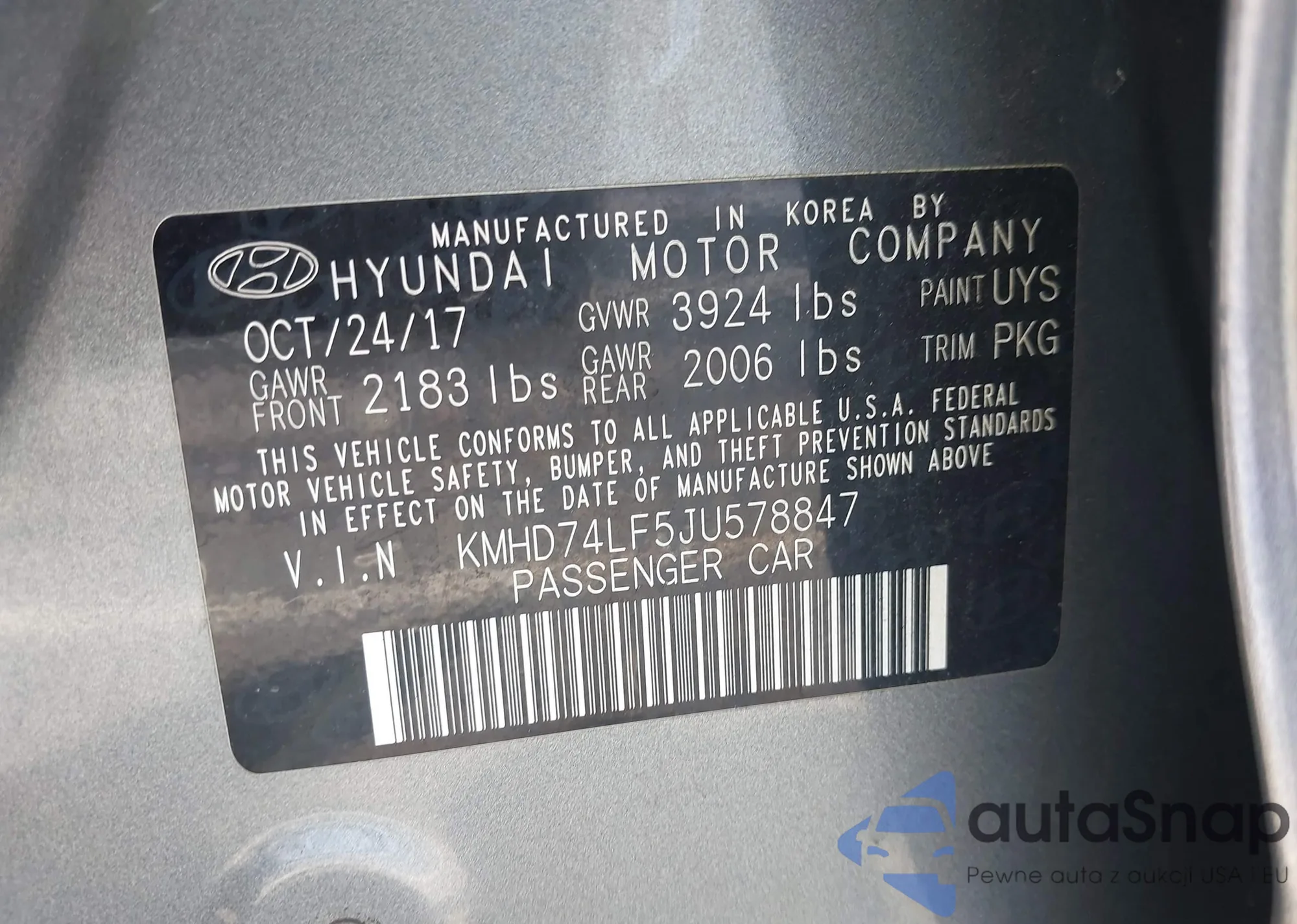 • VIN KMHD74LF5JU578847
