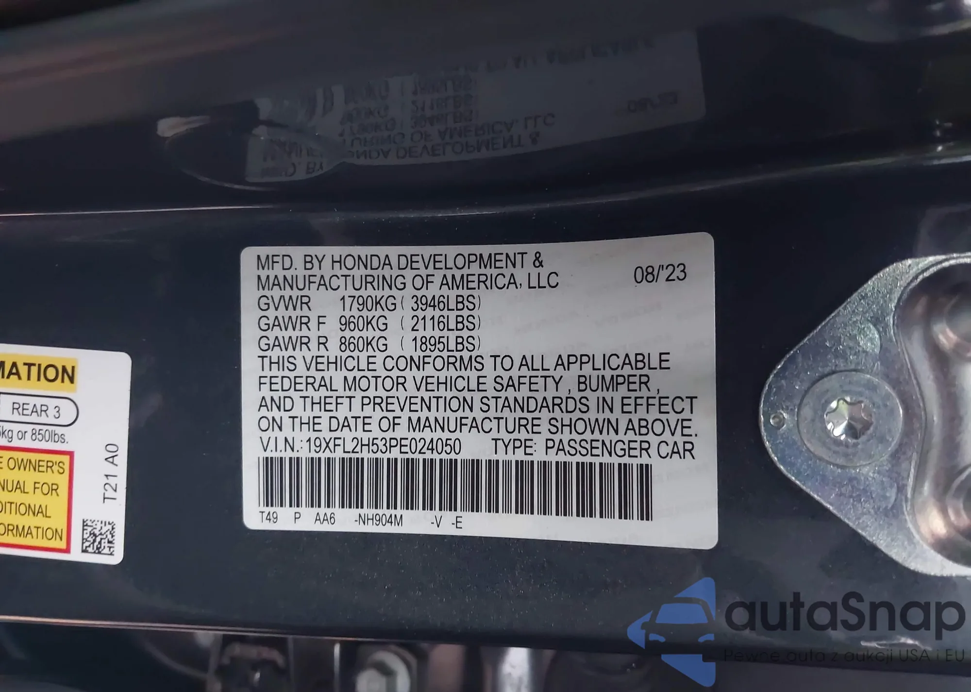 • VIN 19XFL2H53PE024050