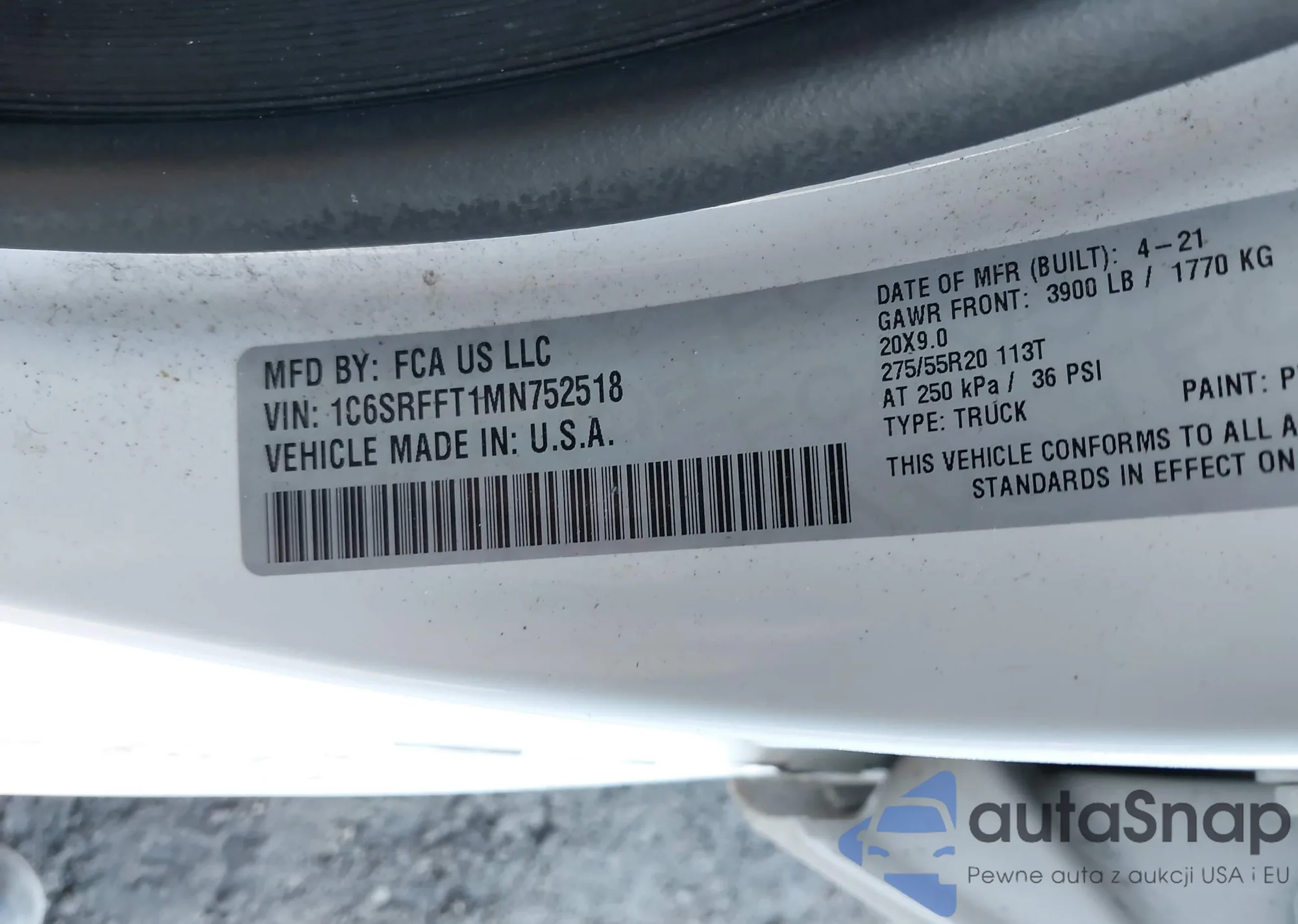 • VIN 1C6SRFFT1MN752518