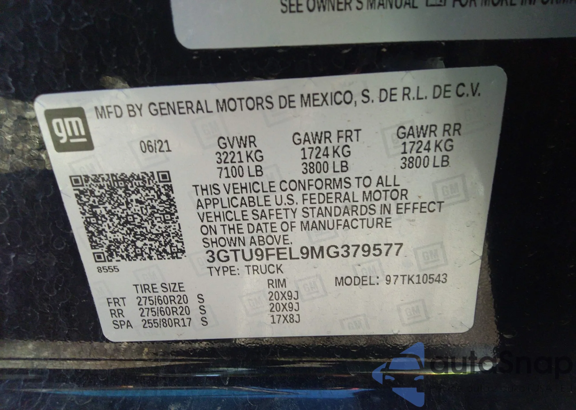 • VIN 3GTU9FEL9MG379577