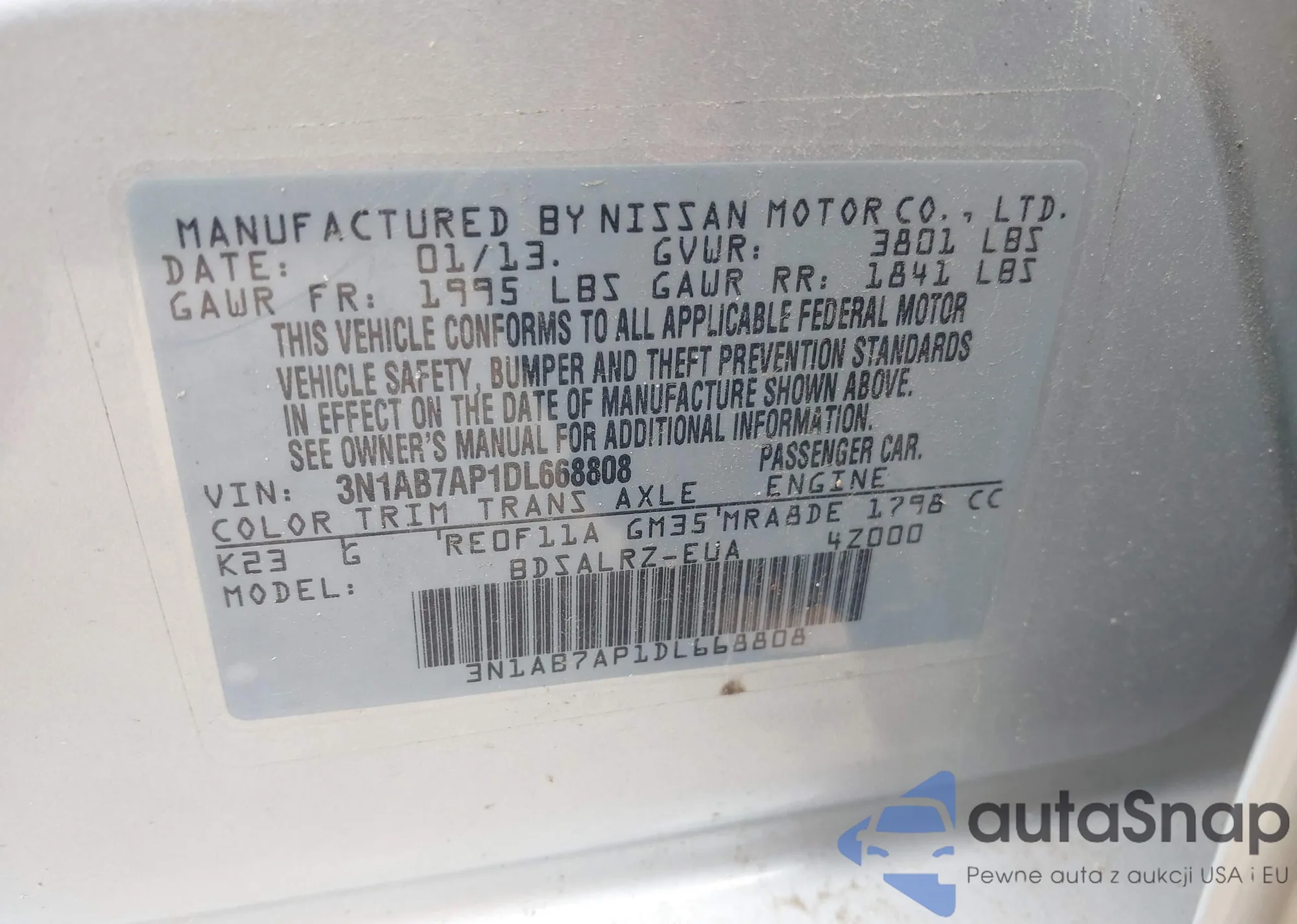 • VIN 3N1AB7AP1DL668808
