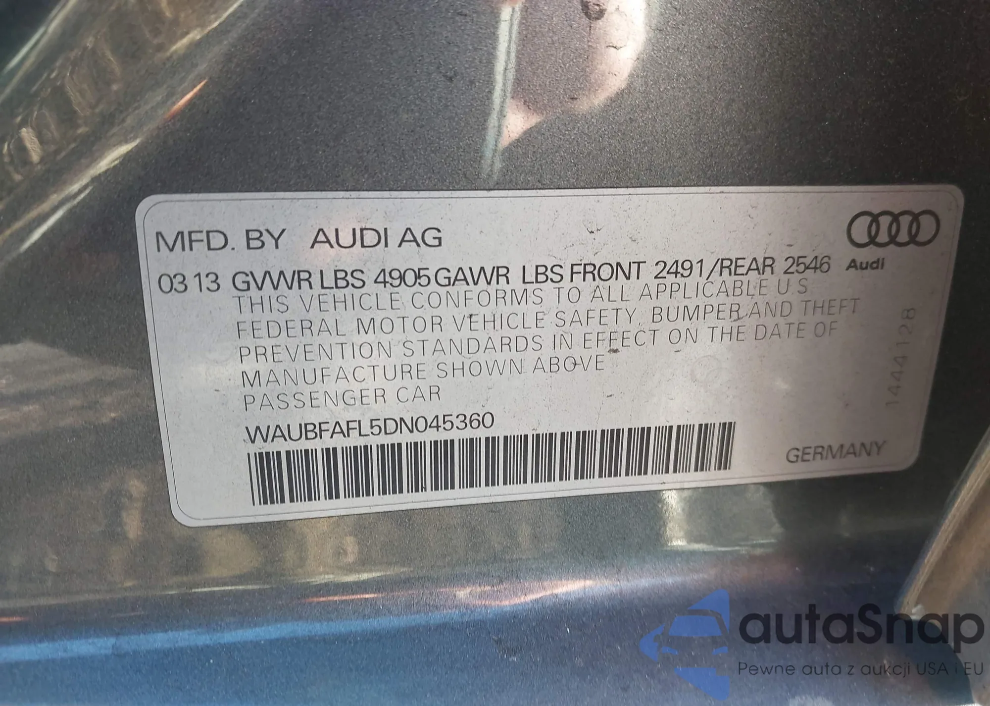 • VIN WAUBFAFL5DN045360