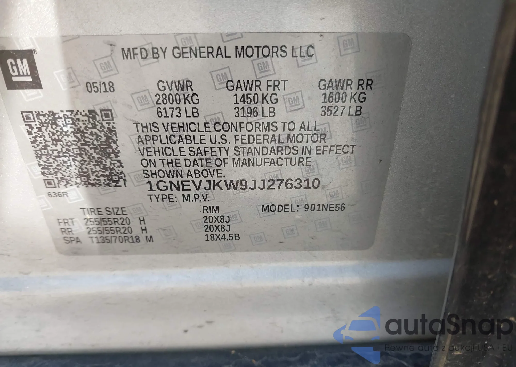 LOT: 40116341 VIN: 1GNEVJKW9JJ276310