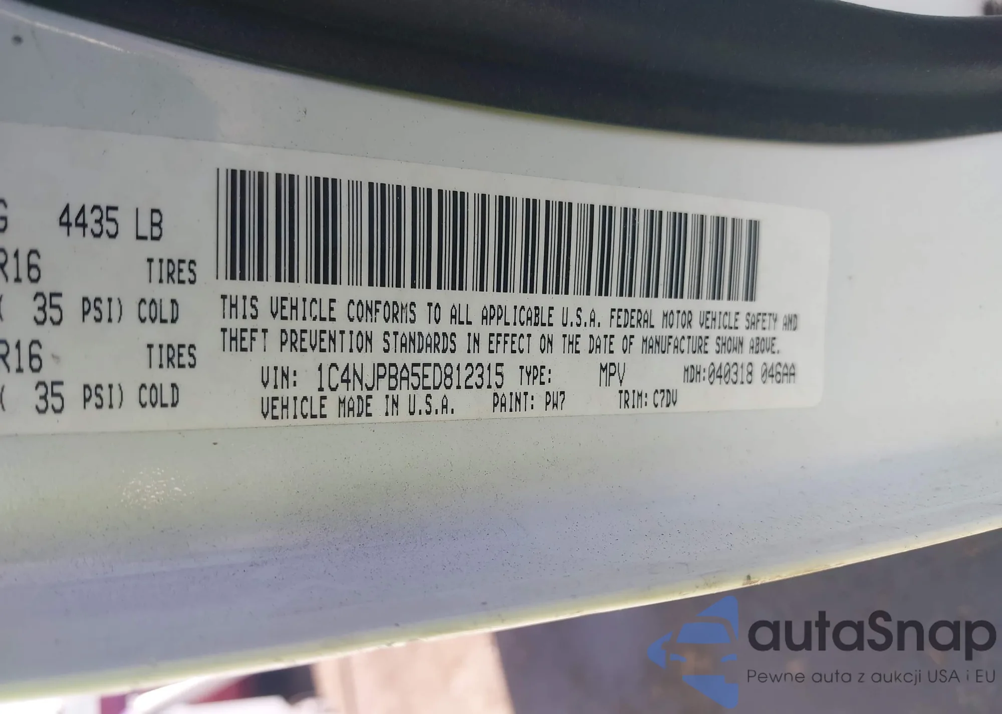 • VIN 1C4NJPBA5ED812315