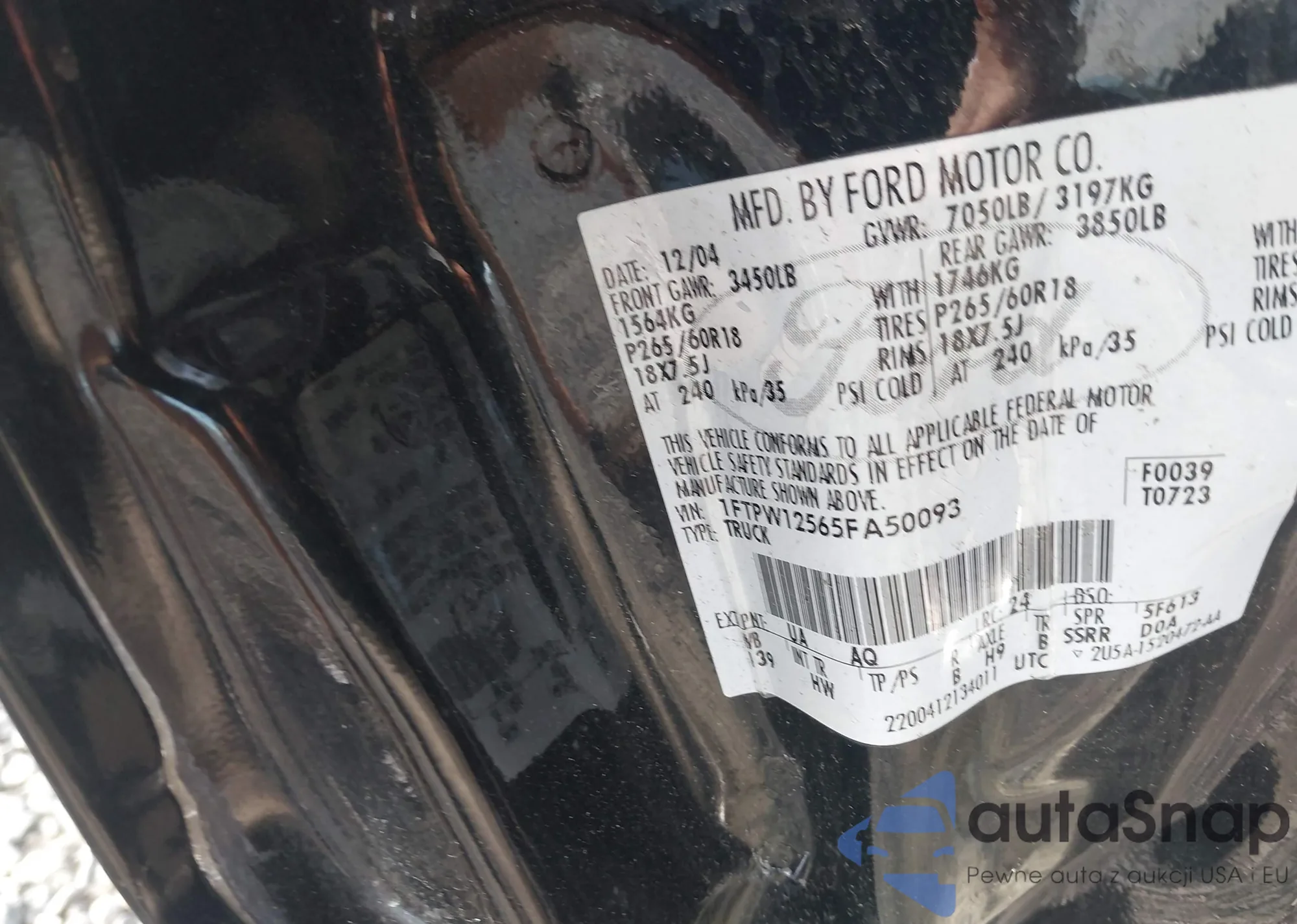 • VIN 1FTPW12565FA50093