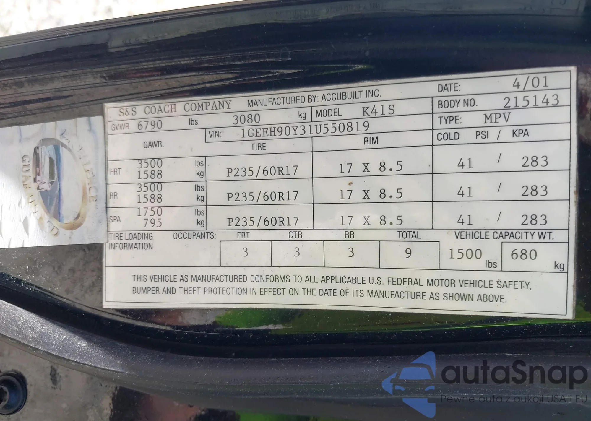 • VIN 1GEEH90Y31U550819