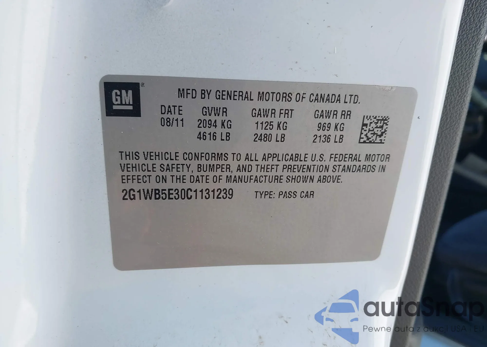• VIN 2G1WB5E30C1131239