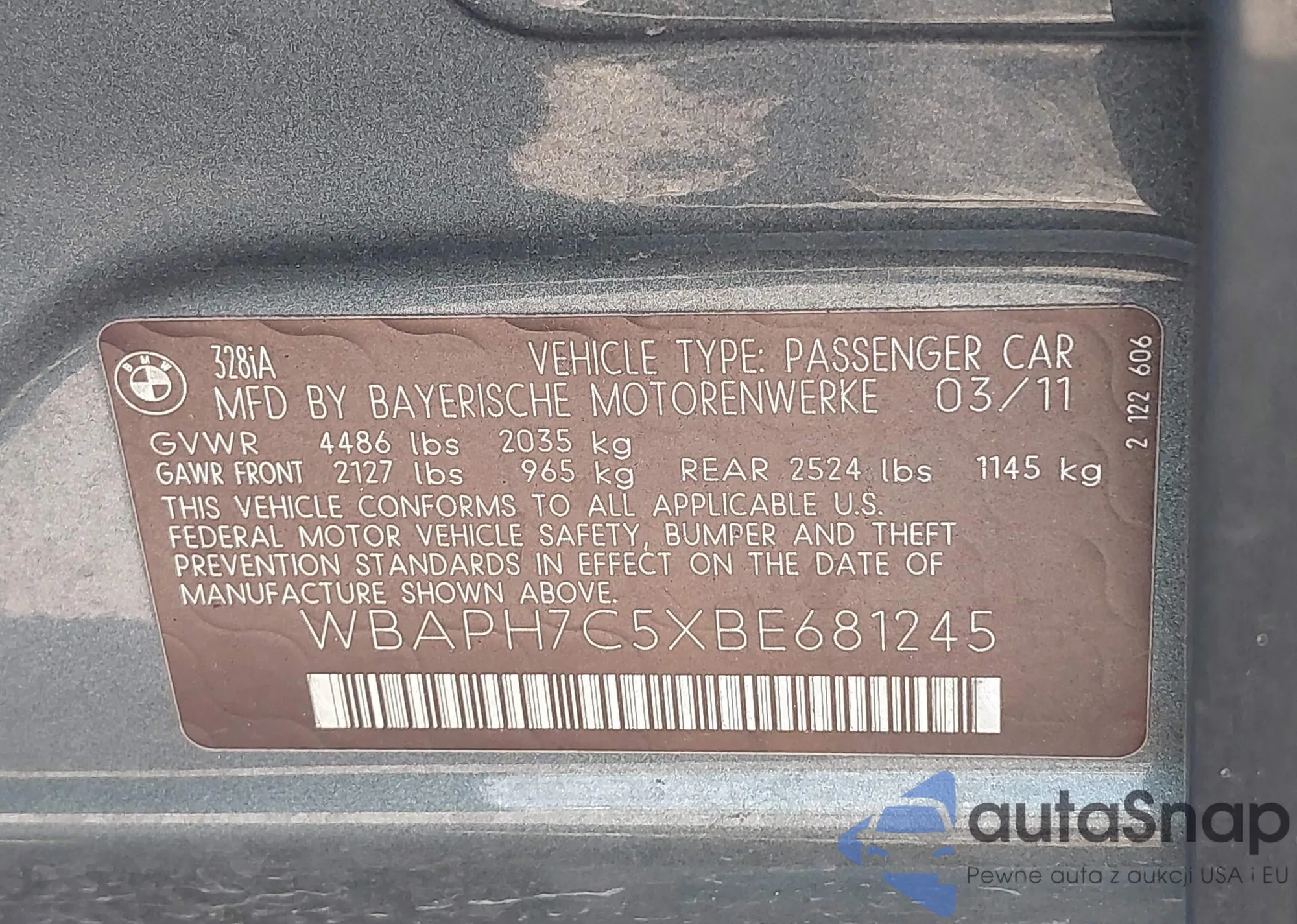 • VIN WBAPH7C5XBE681245