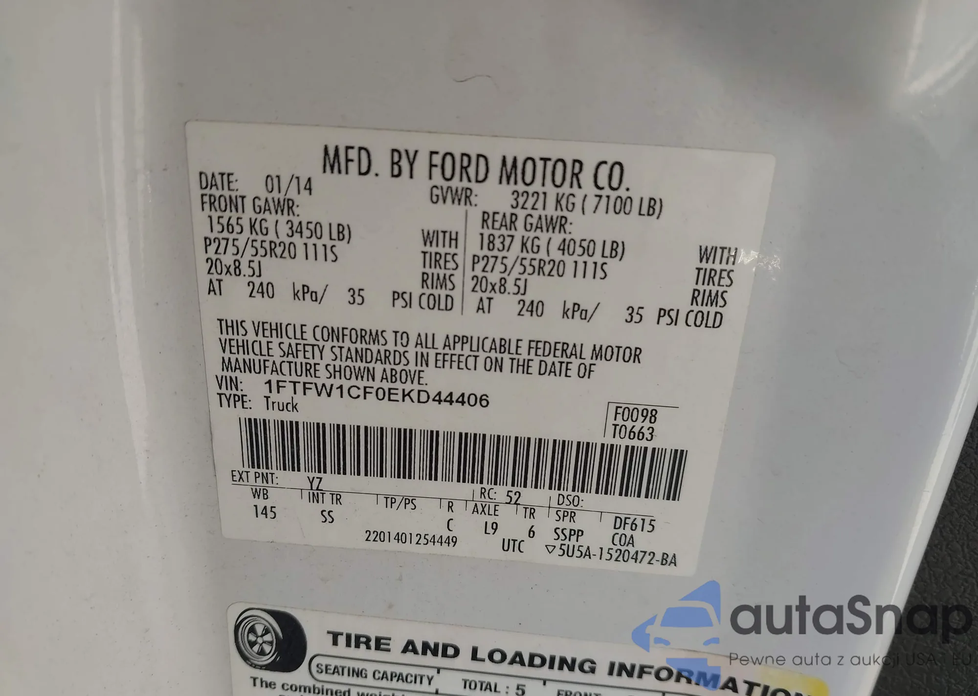 • VIN 1FTFW1CF0EKD44406