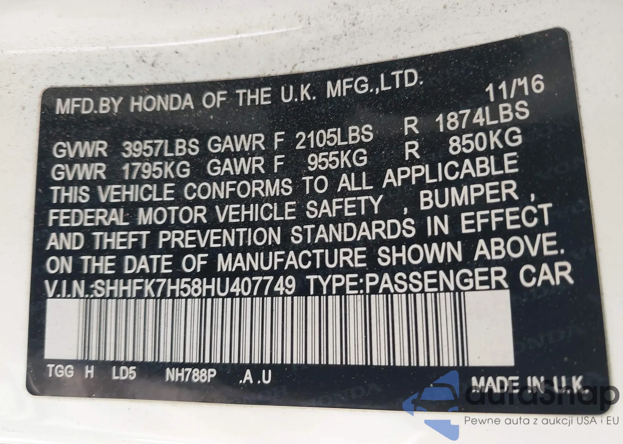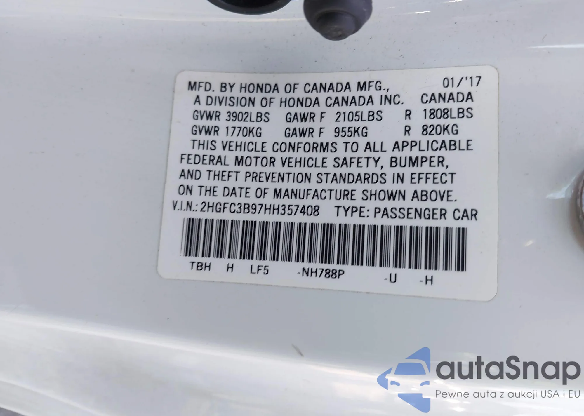 • VIN 2HGFC2E89LH506715