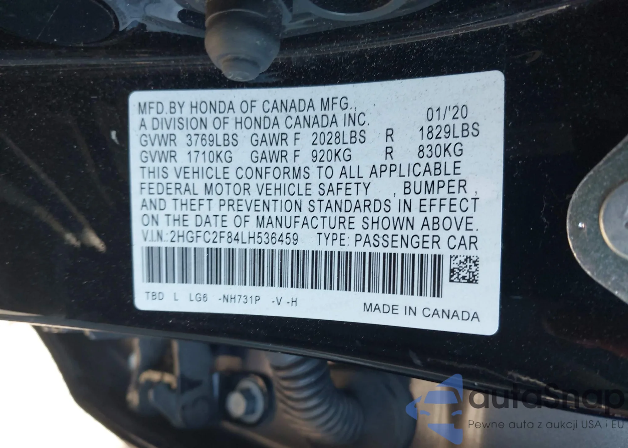 • VIN 2HGFC2F84LH536459