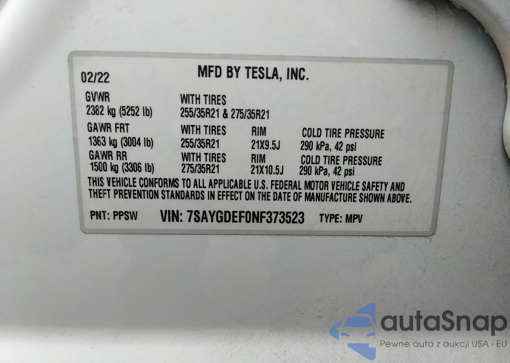 • VIN 7SAYGDEF0NF373523