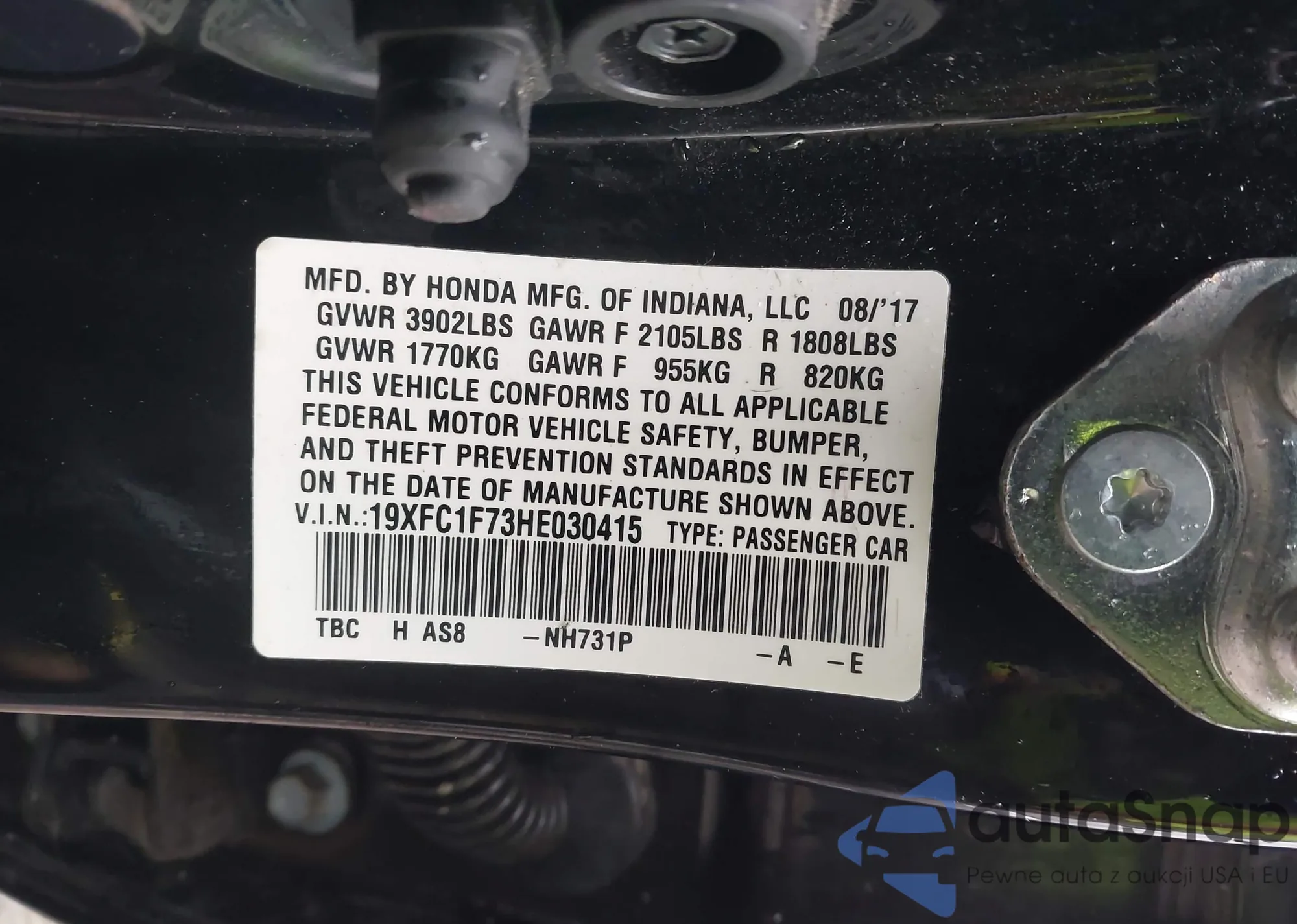 • VIN 19XFC1F73HE030415