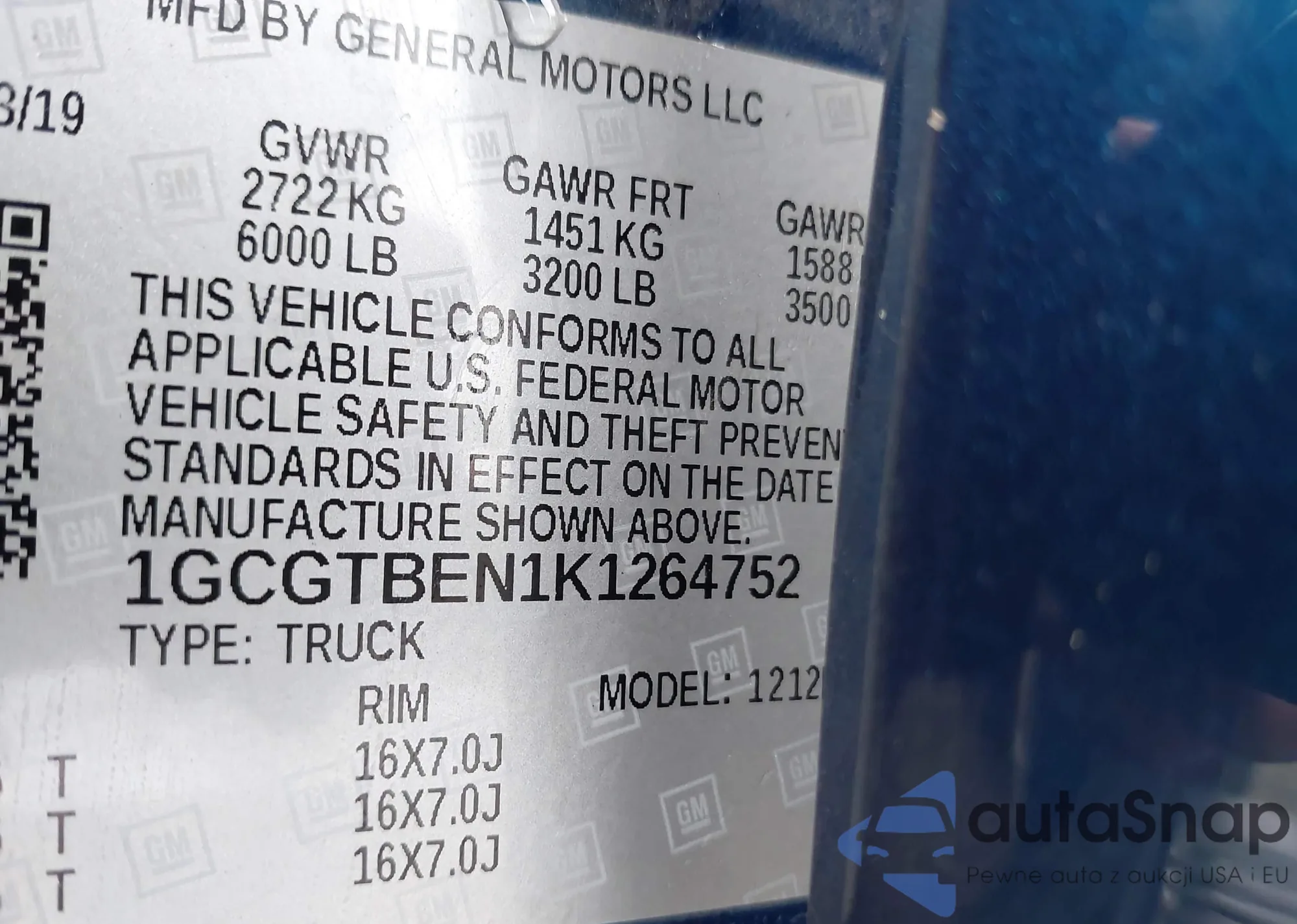 LOT: 40961836 VIN: 1GCGTBEN1K1264752