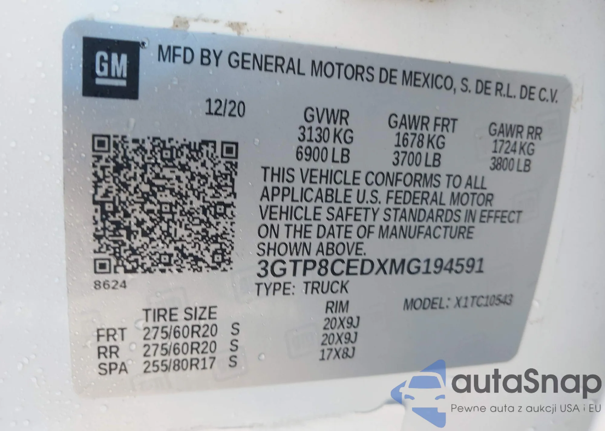 LOT: 41247113 VIN: 3GTP8CEDXMG194591