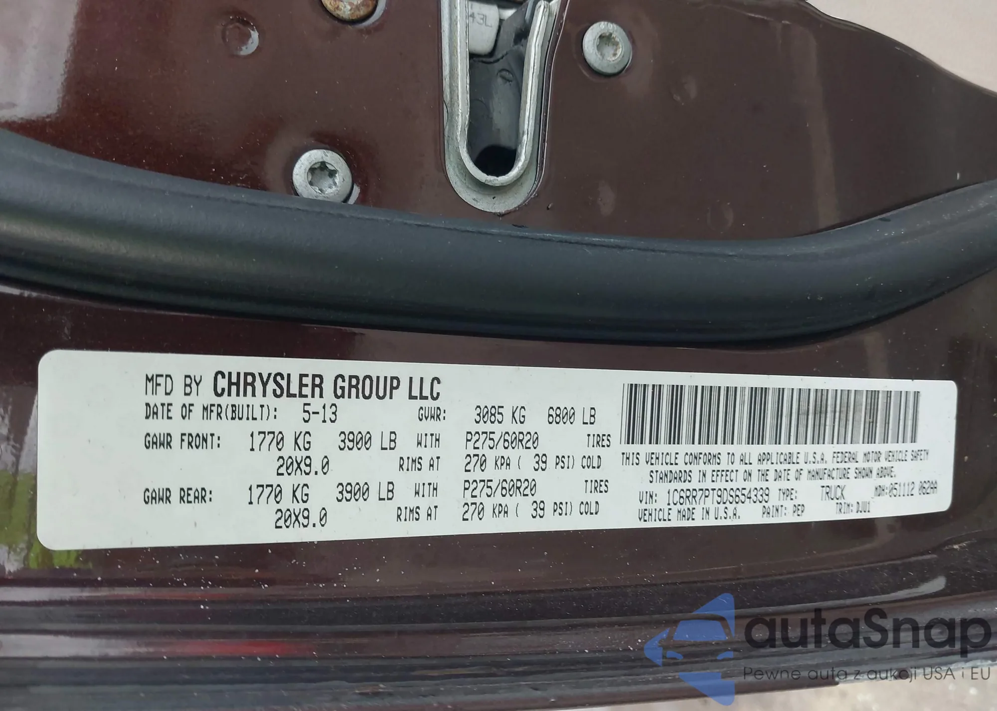 • VIN 1C6RR7PT9DS654339