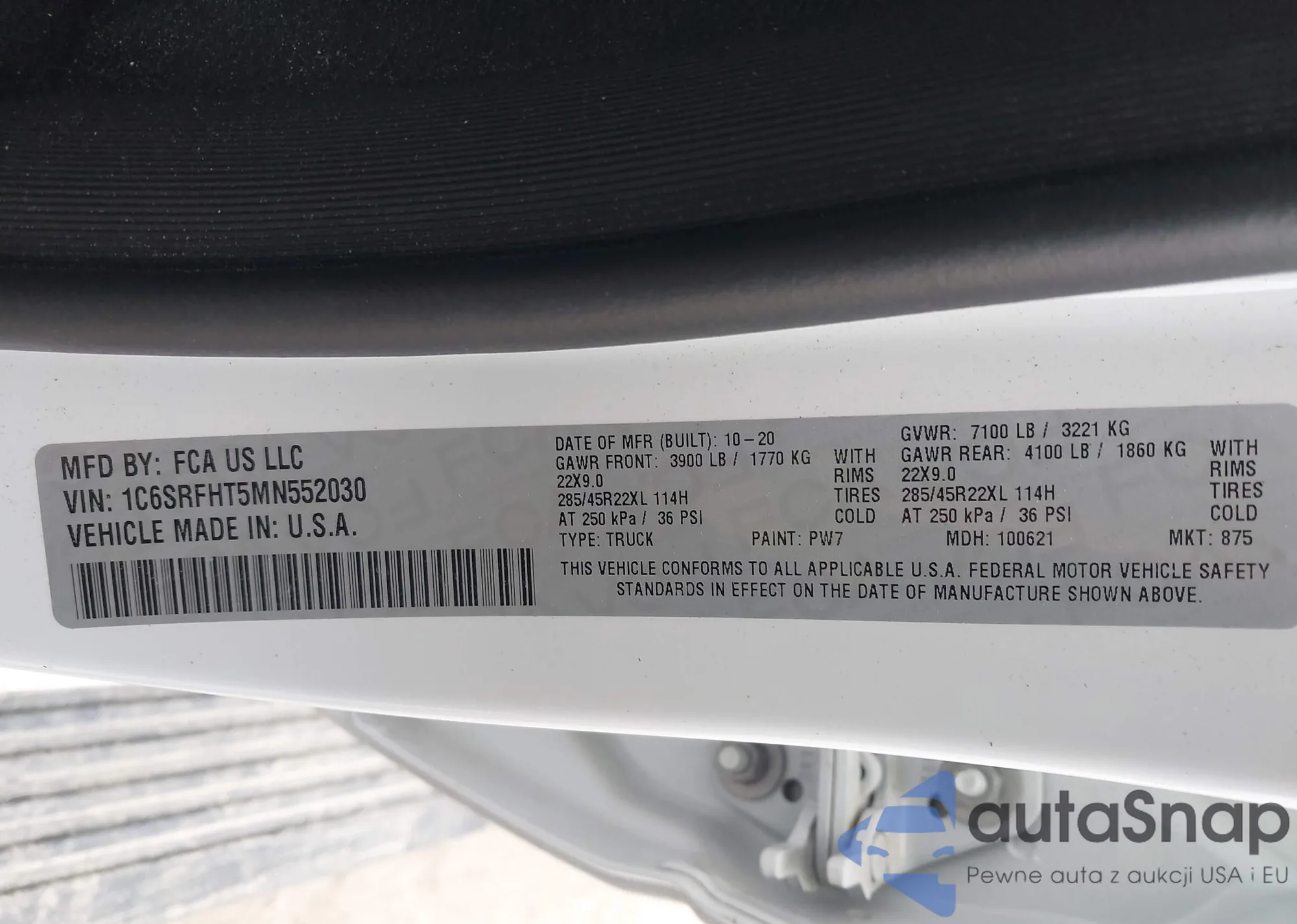 LOT: 40713404 VIN: 1C6SRFHT5MN552030