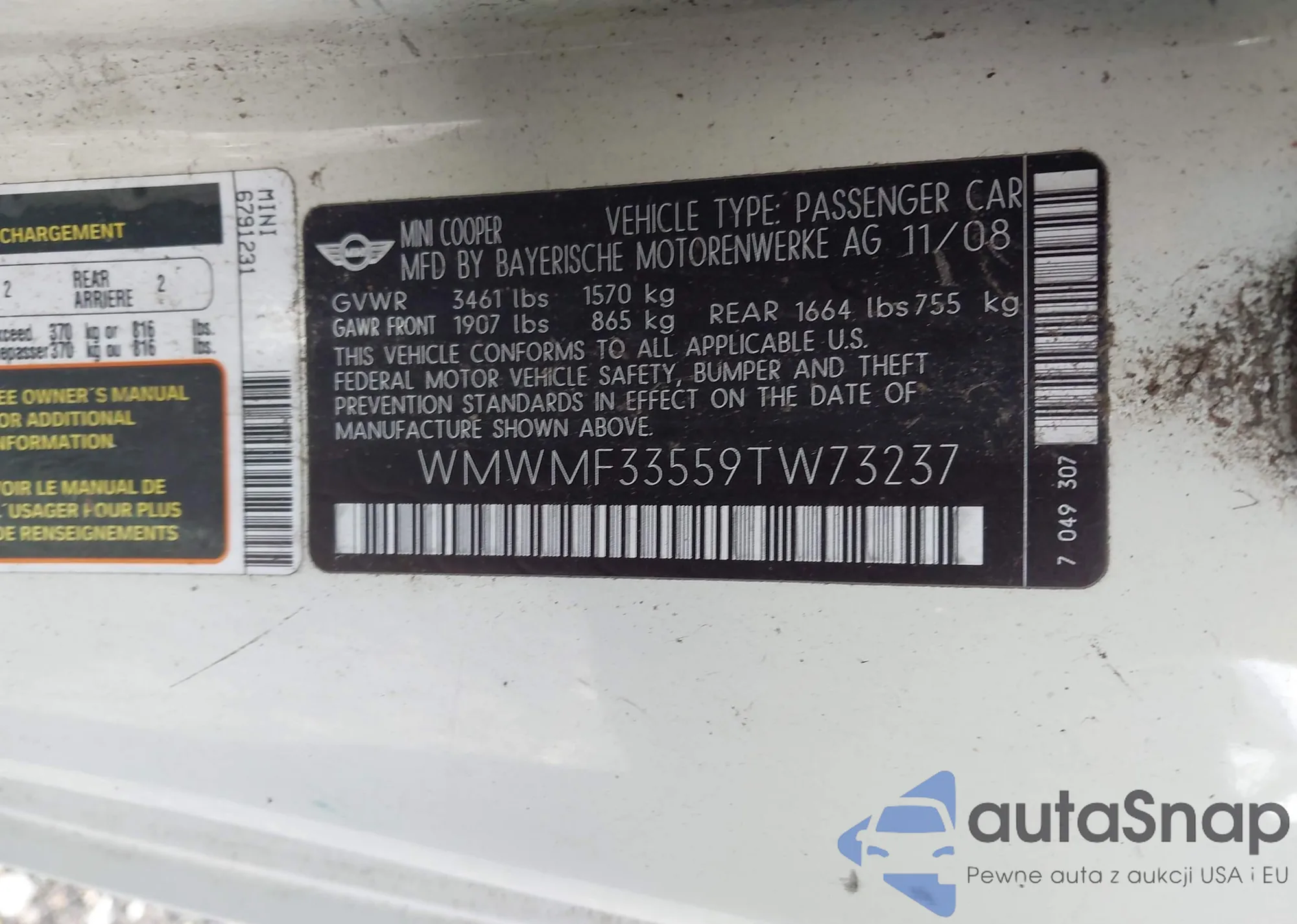 • VIN WMWMF33559TW73237