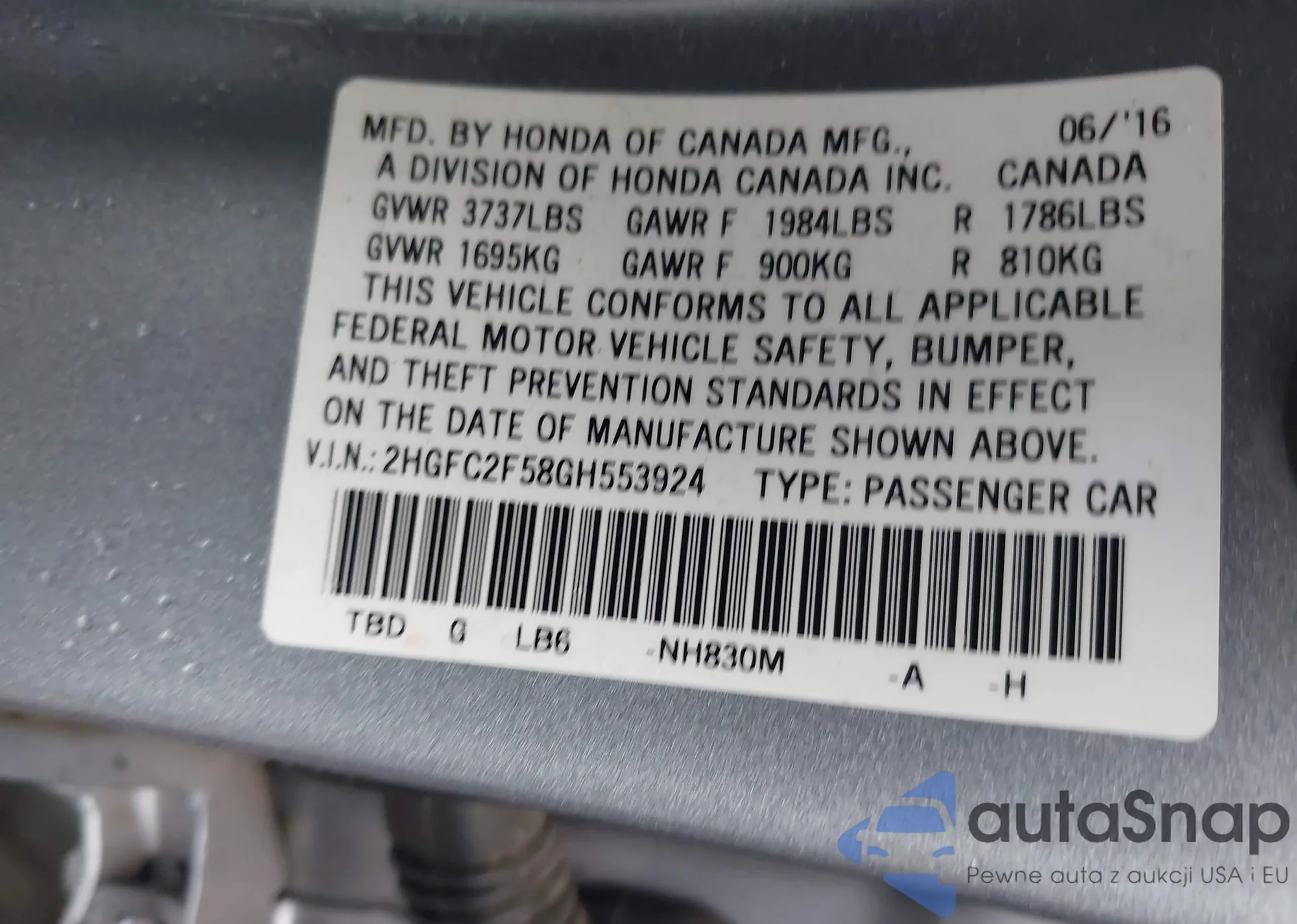 • VIN SHHFK7H56JU431098