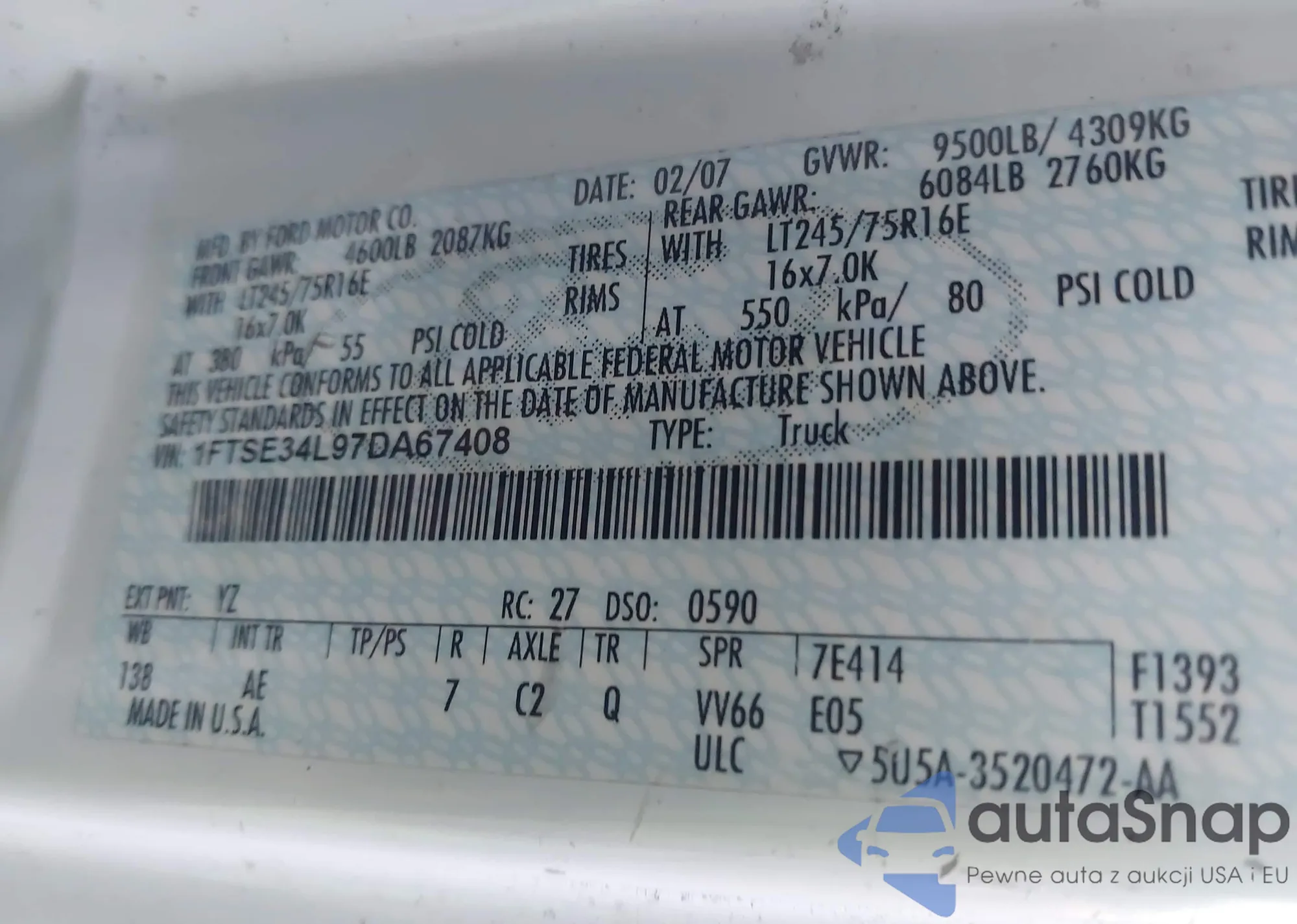 • VIN 1FTSE34L97DA67408