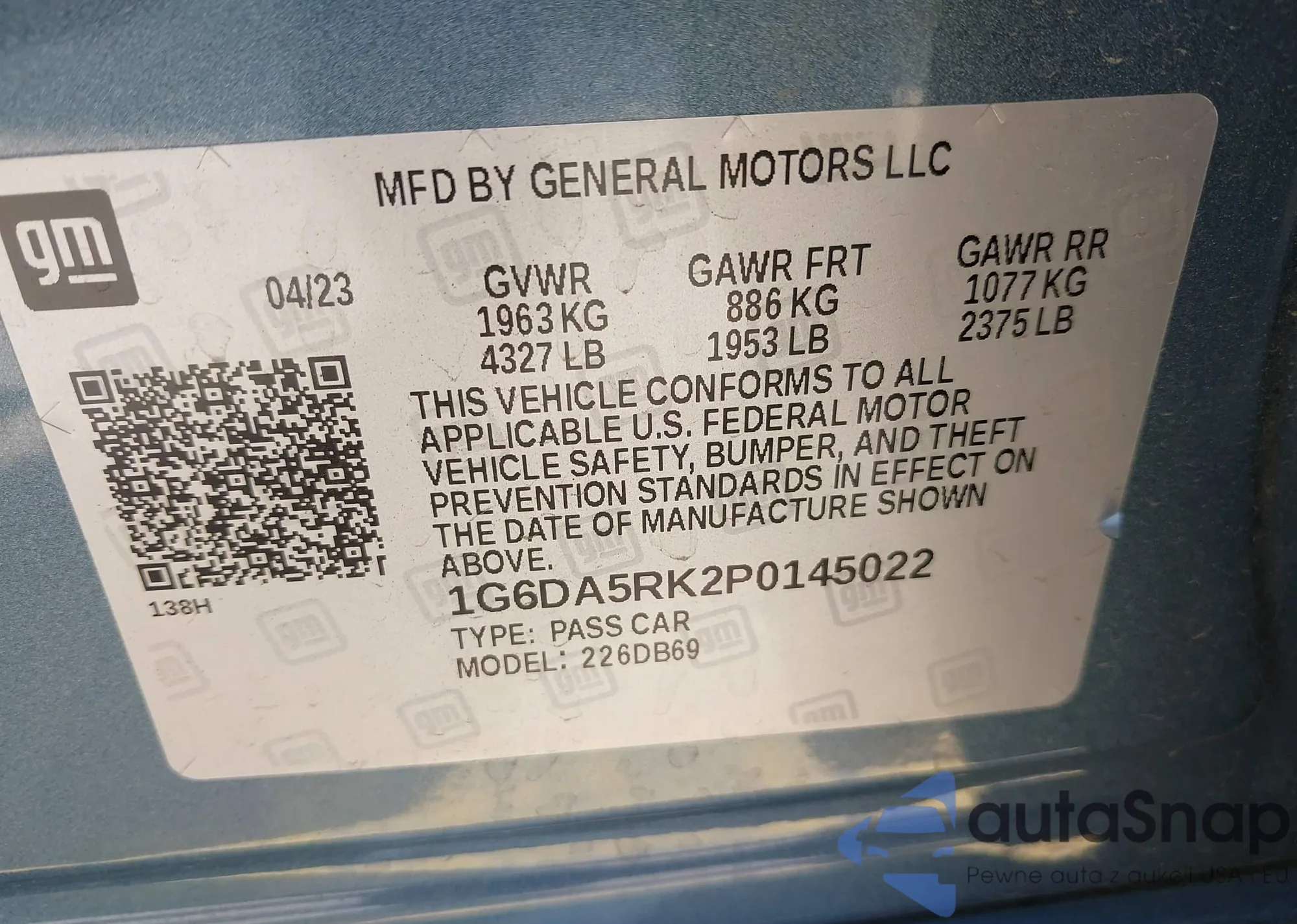 • VIN 1G6DA5RK2P0145022