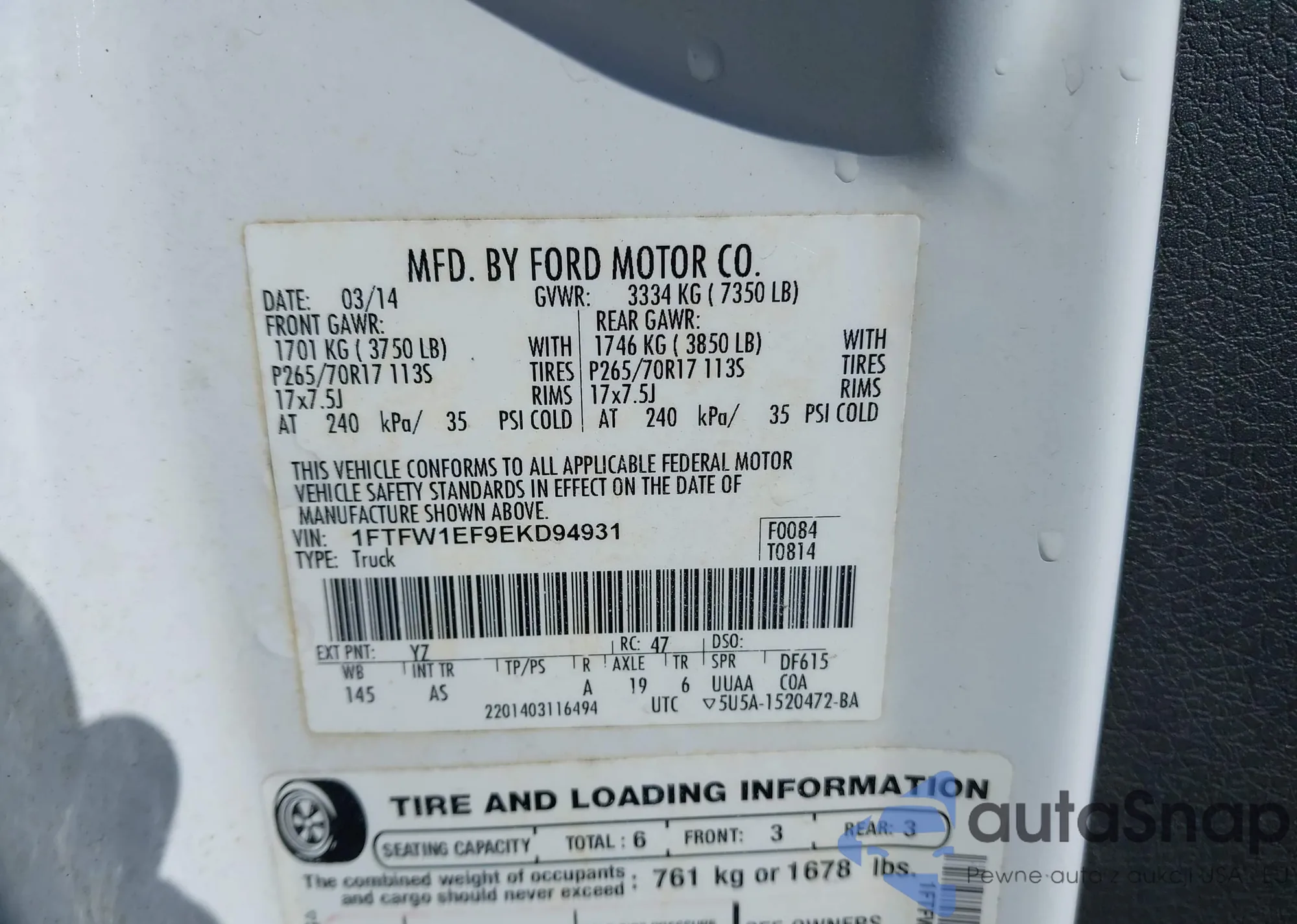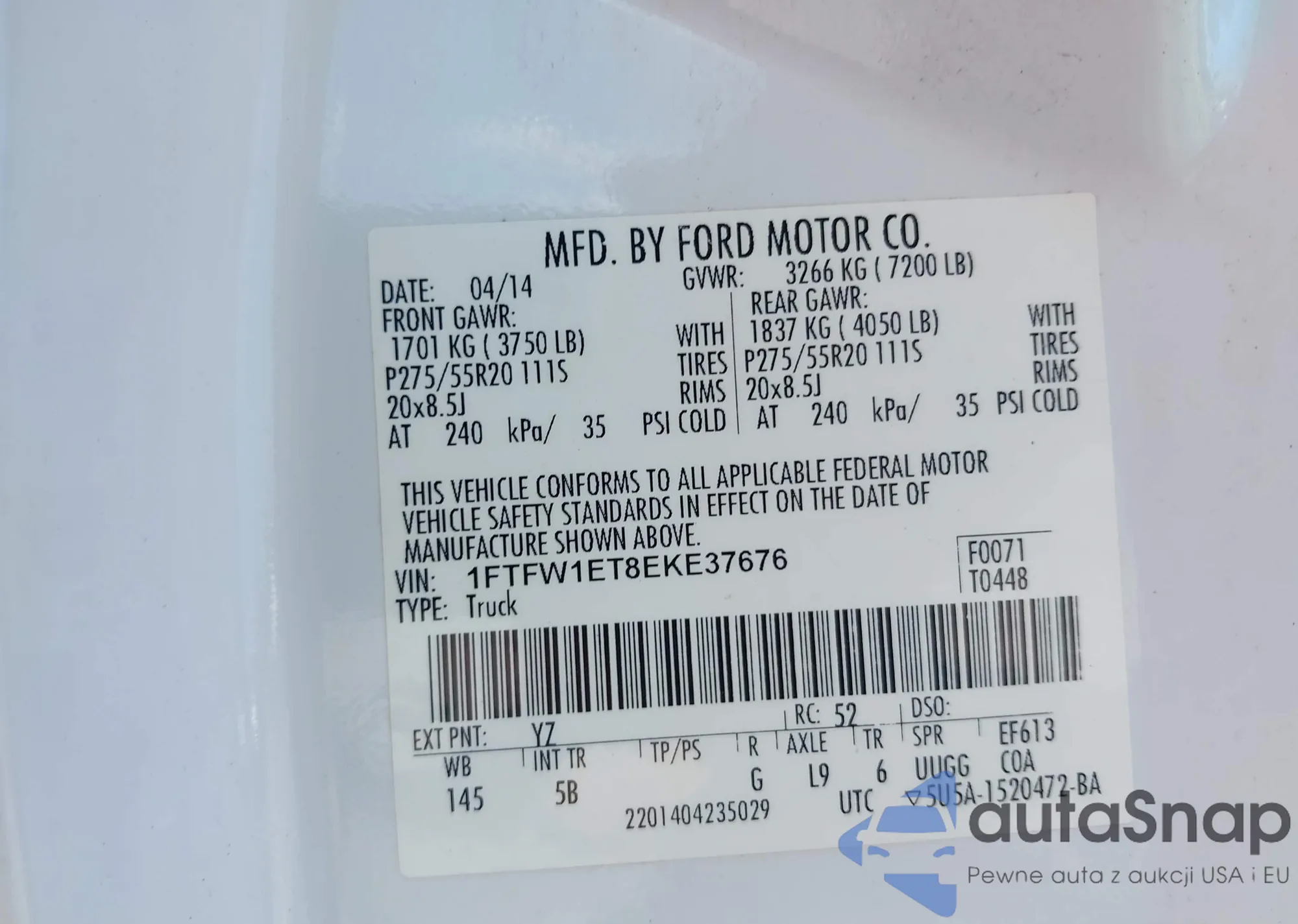 • VIN 1FTFW1ET8EKE37676