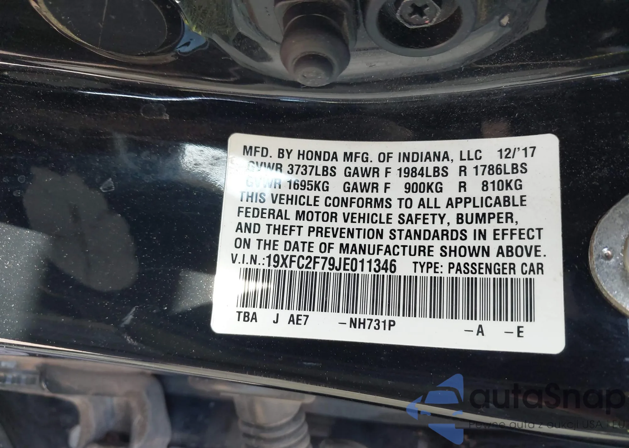 • VIN 19XFC2F79JE011346