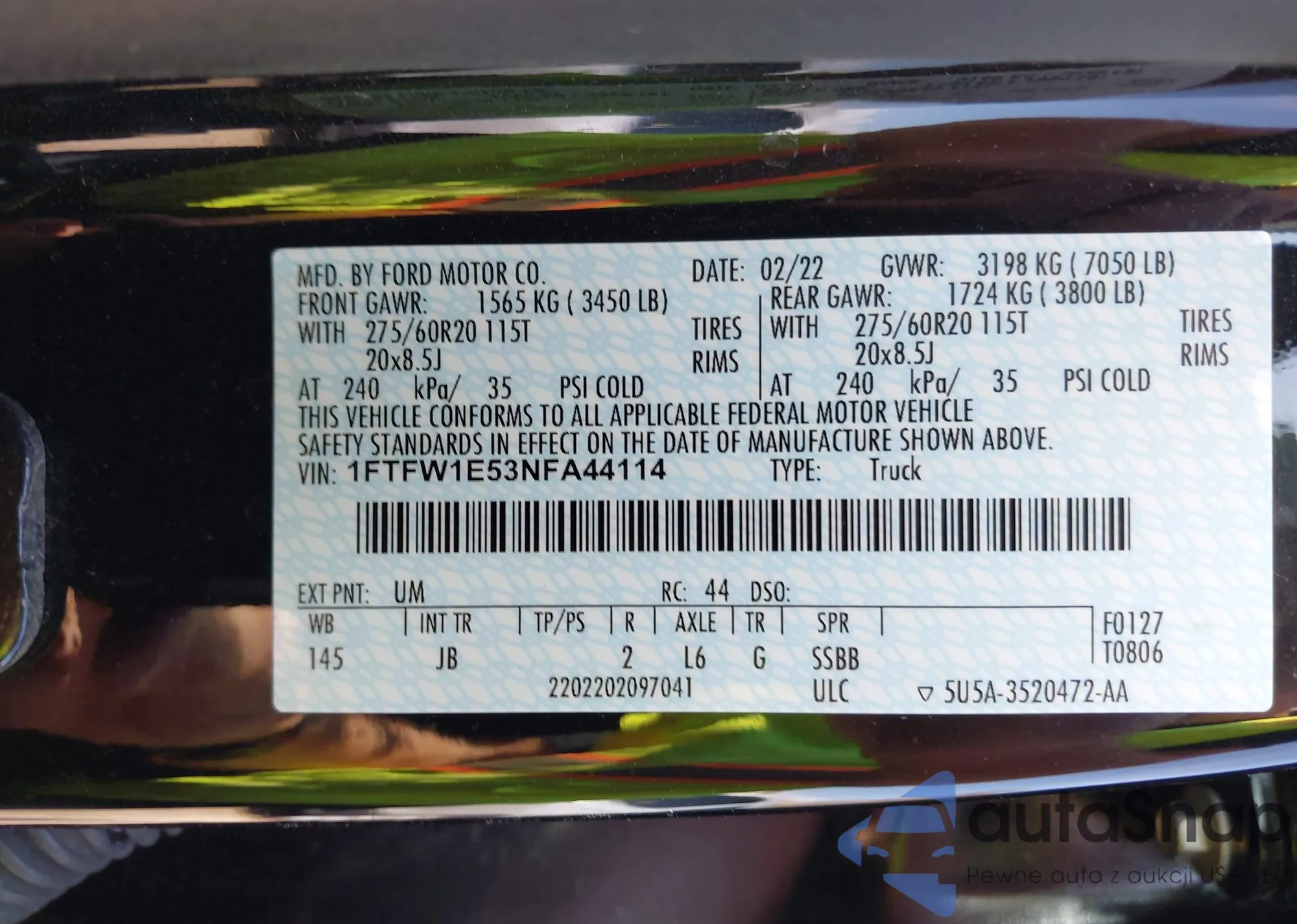 • VIN 1FTFW1E53NFA44114