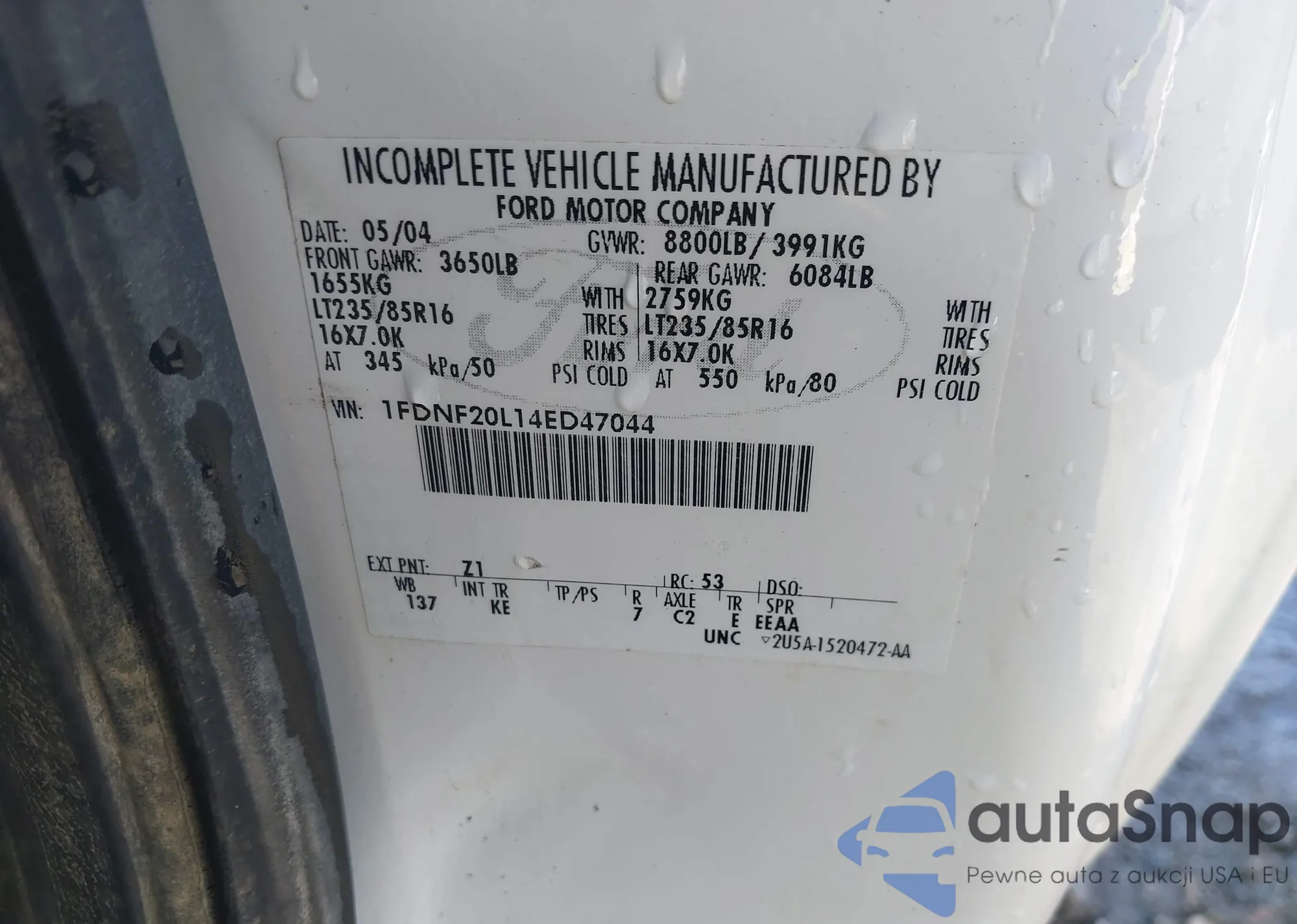 LOT: 41001283 VIN: 1FDNF20L14ED47044