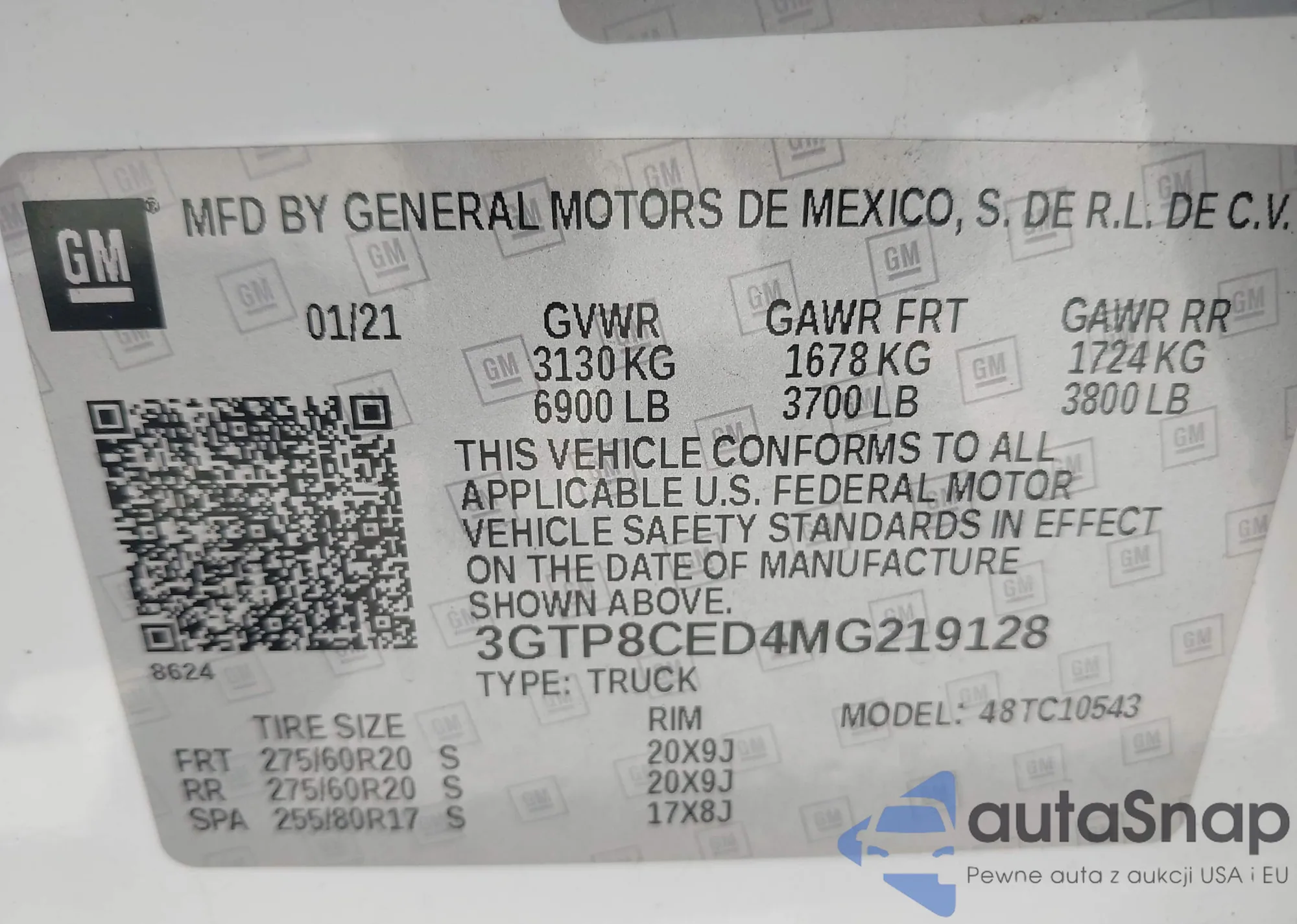 • VIN 3GTP8CED4MG219128