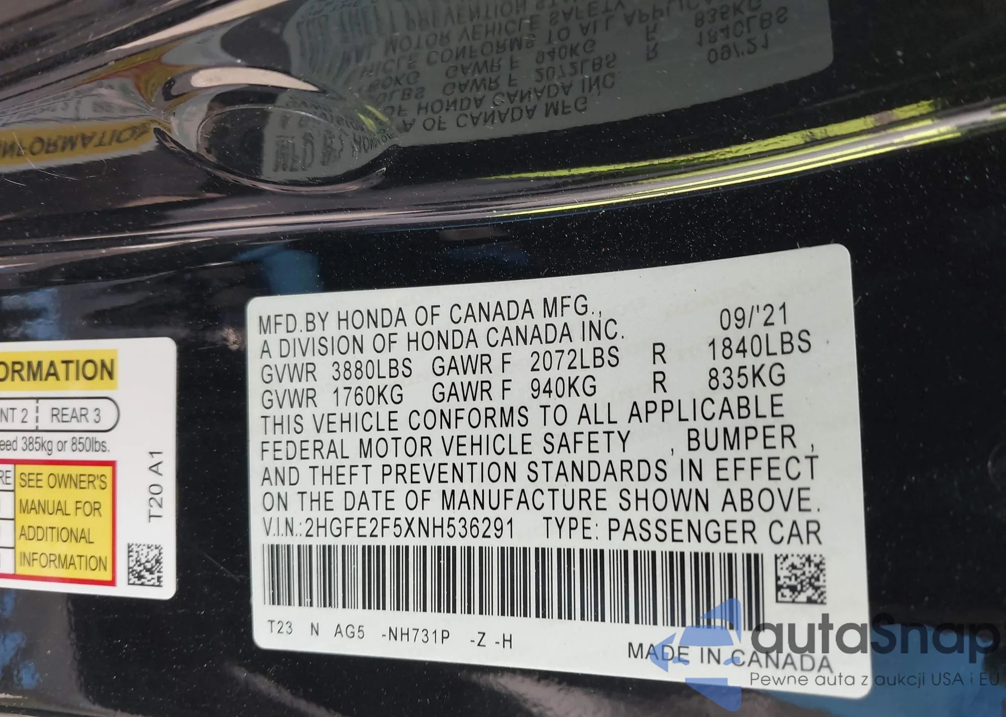 • VIN 2HGFE2F5XNH536291