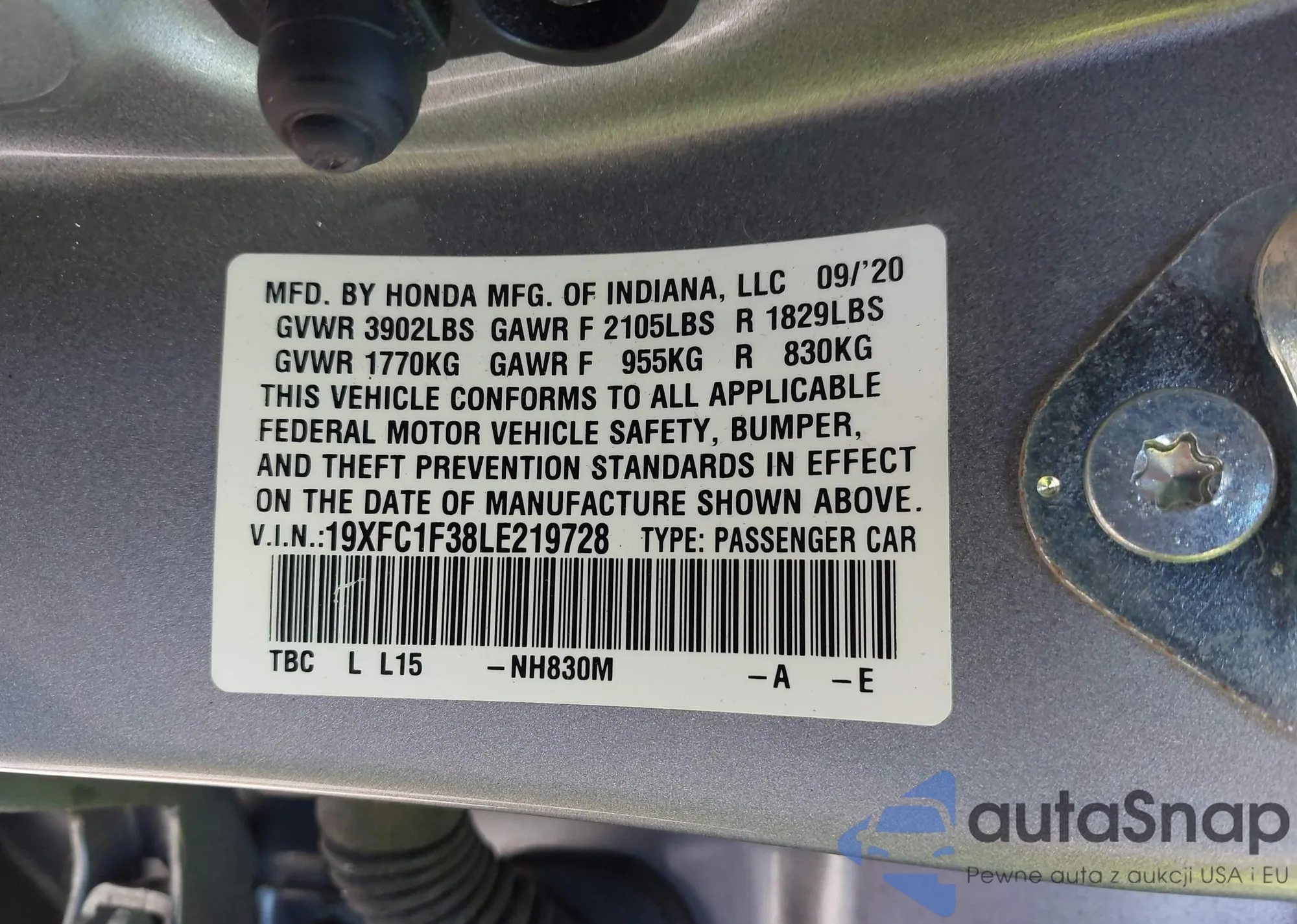 • VIN 19XFC1F38LE219728
