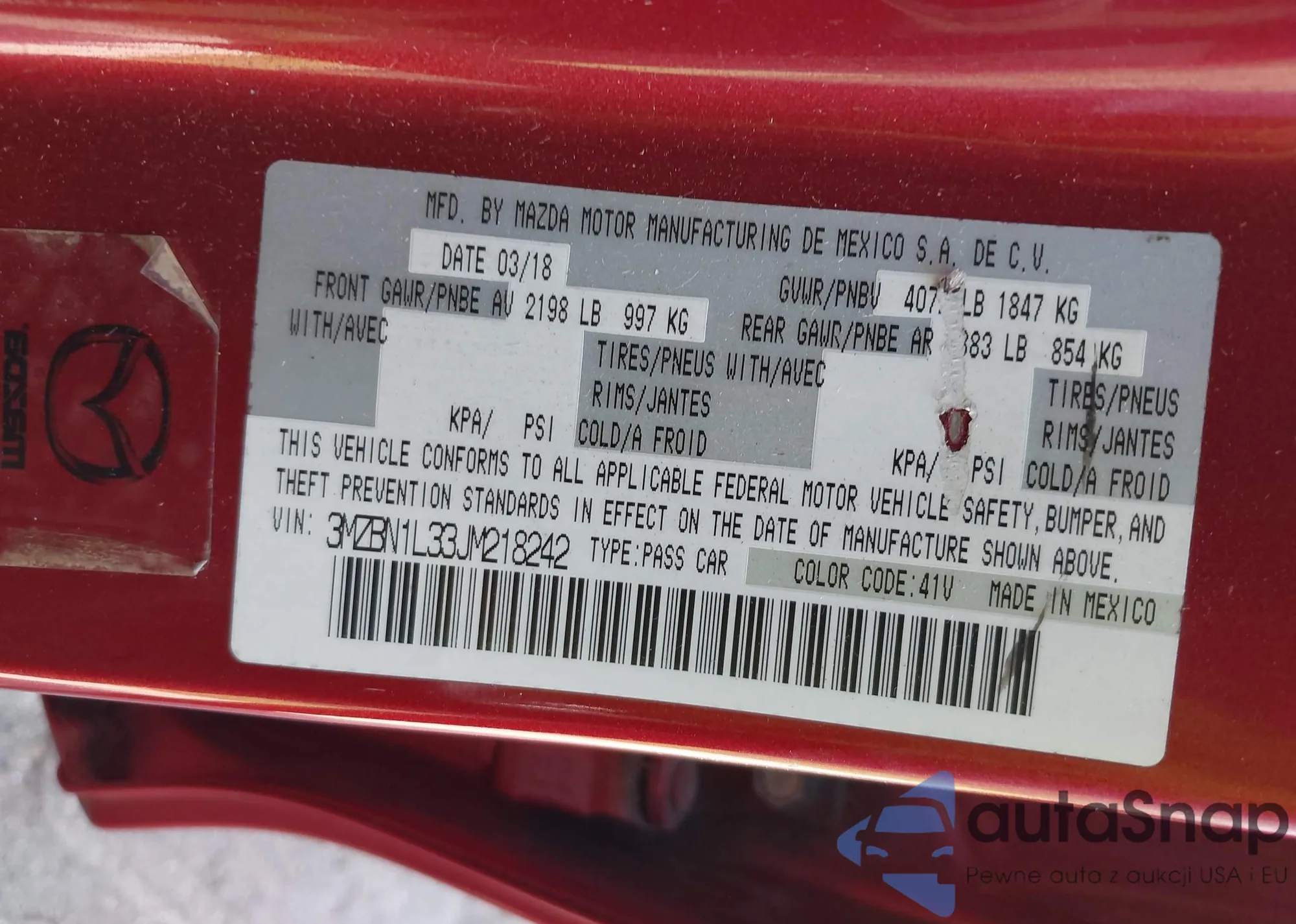 • VIN 3MZBN1L33JM218242