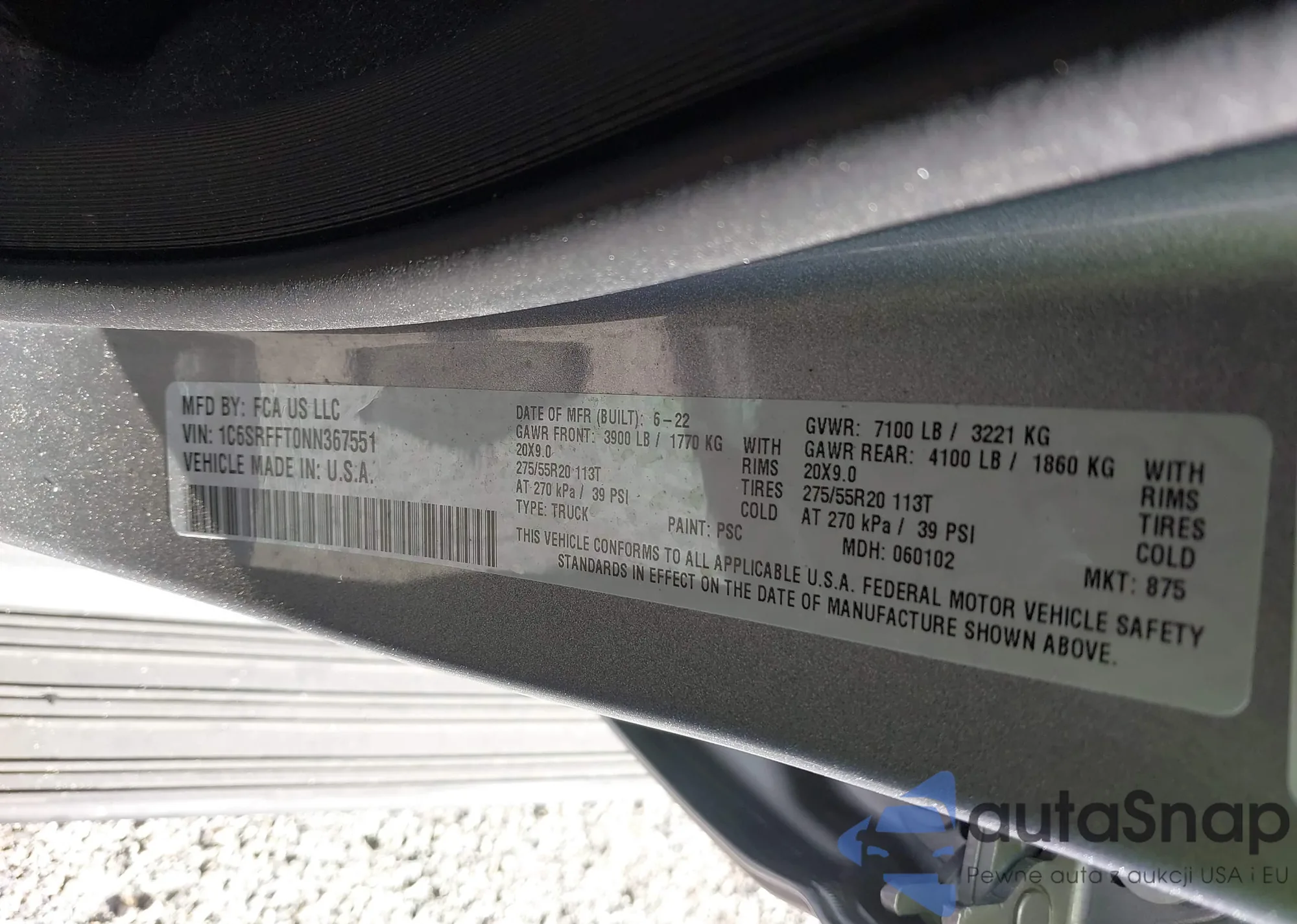 LOT: 40574558 VIN: 1C6SRFFT0NN367551