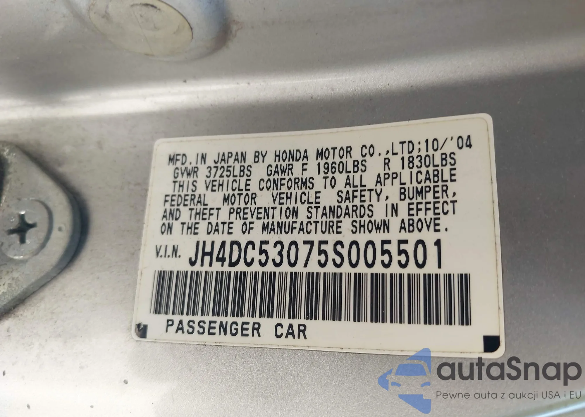 • VIN JH4DC53075S005501