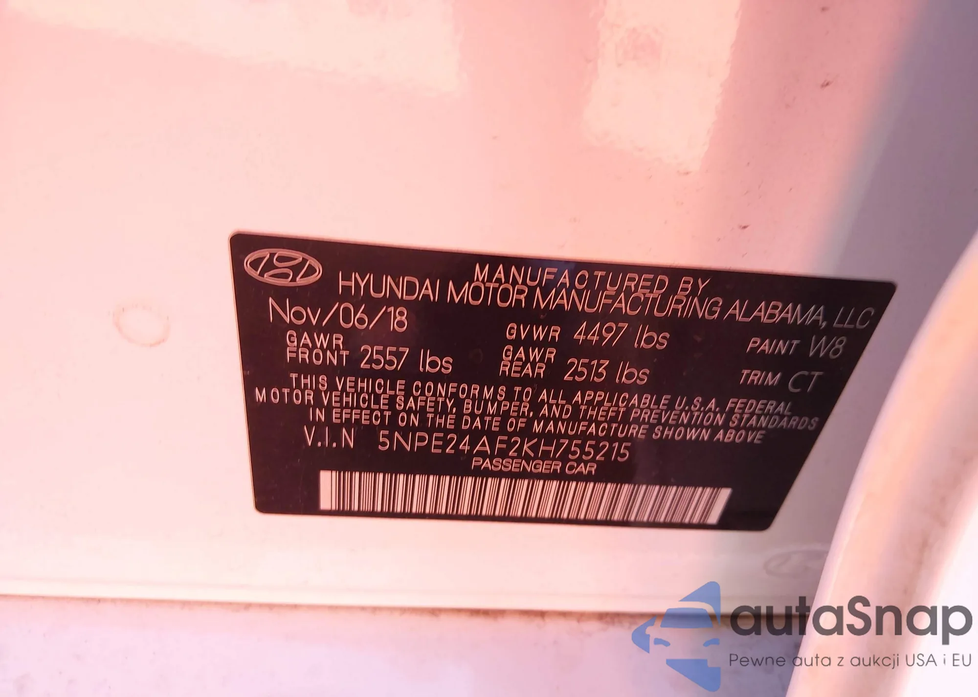 LOT: 40430999 VIN: 5NPE24AF2KH755215