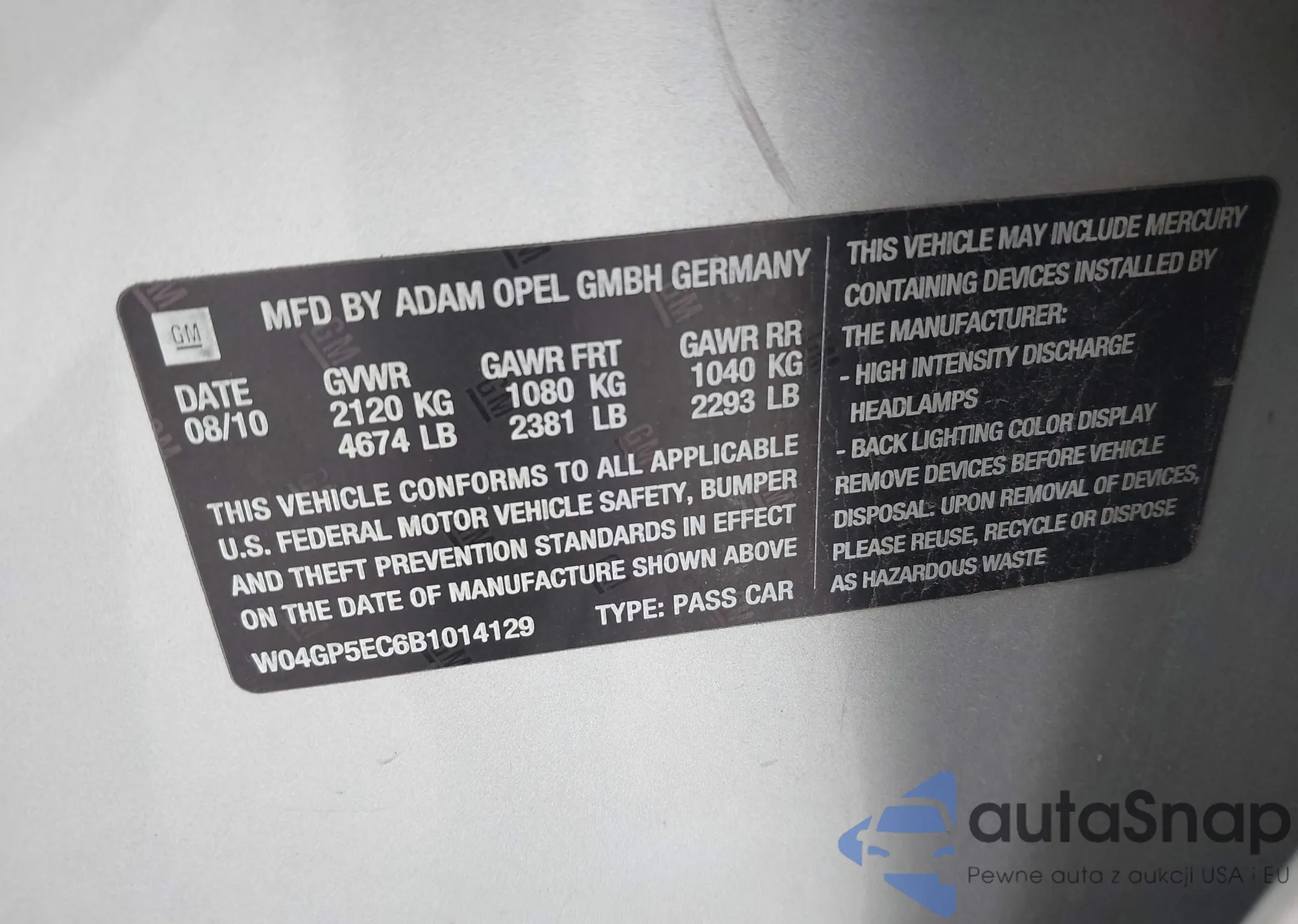 • VIN W04GP5EC6B1014129