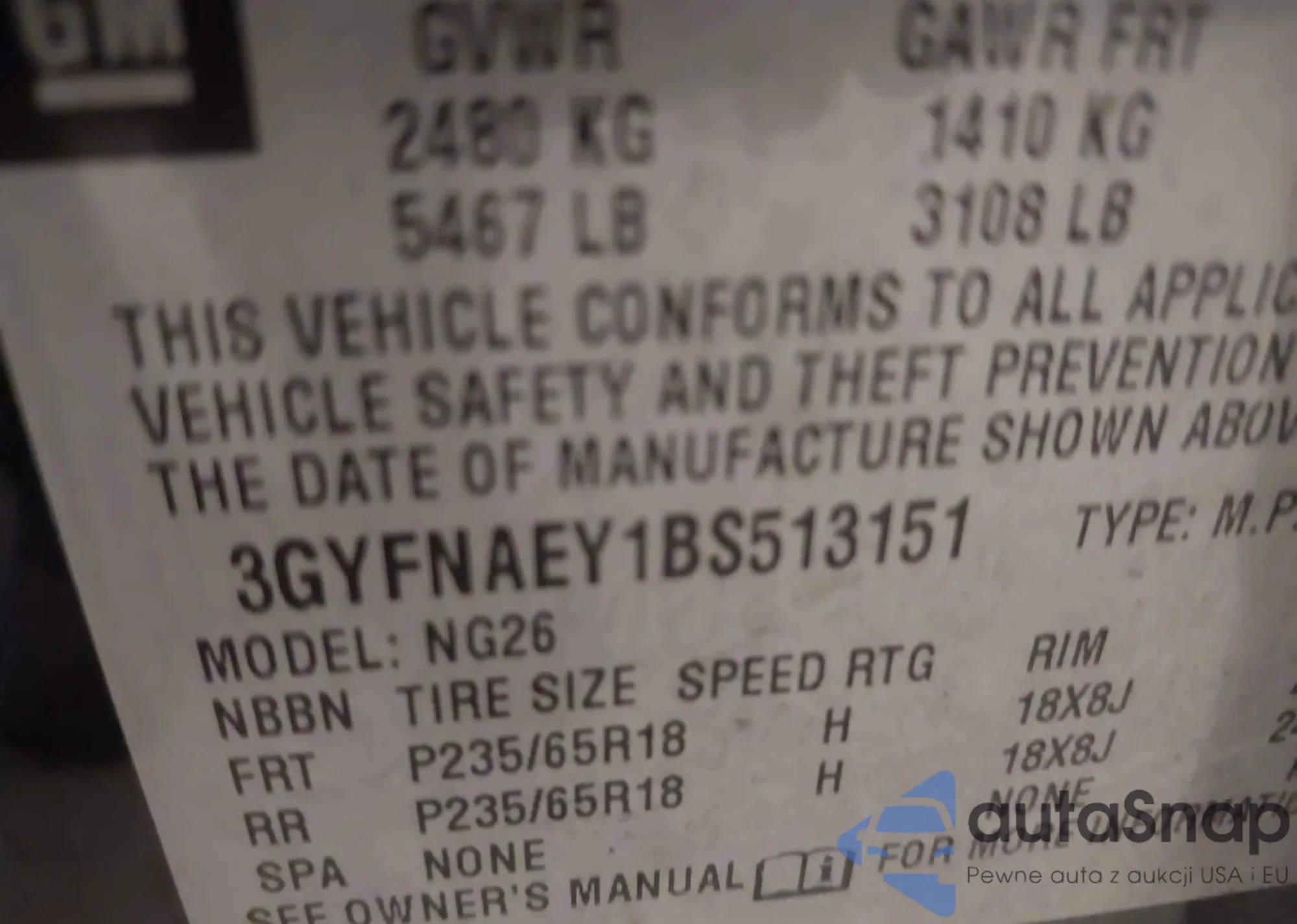 • VIN 3GYFNAEY1BS513151