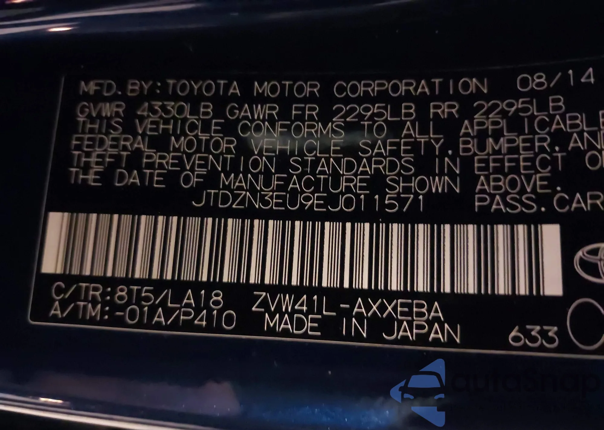 • VIN JTDZN3EU9EJ011571