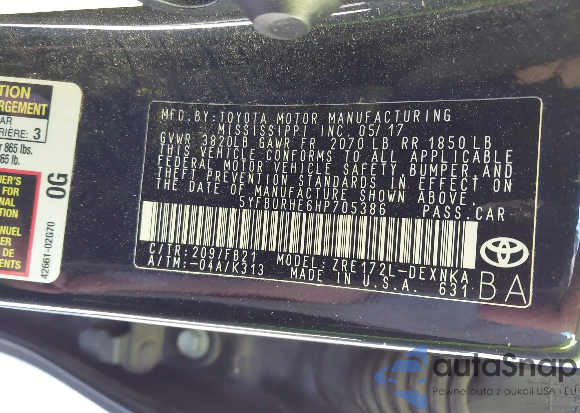 • VIN 5YFBURHE6HP705386