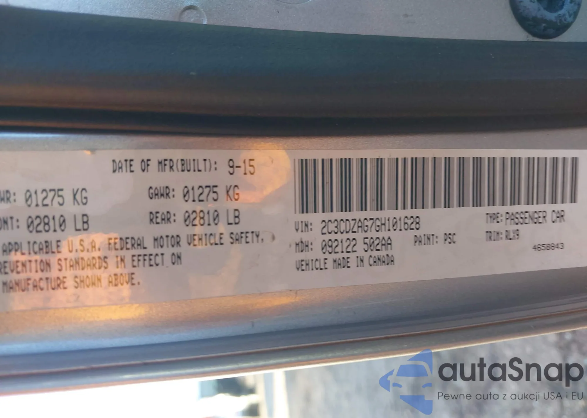 • VIN 2C3CDZAG7GH101628