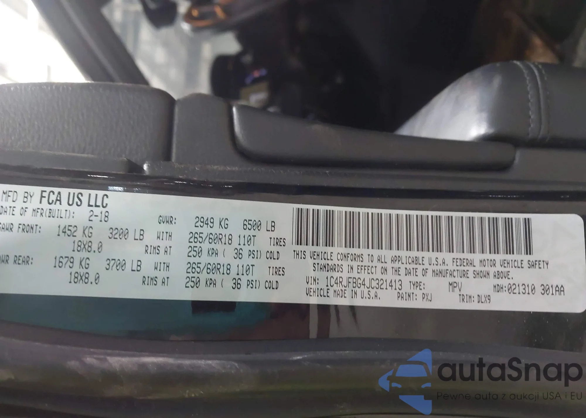 • VIN 1C4RJFBG4JC321413