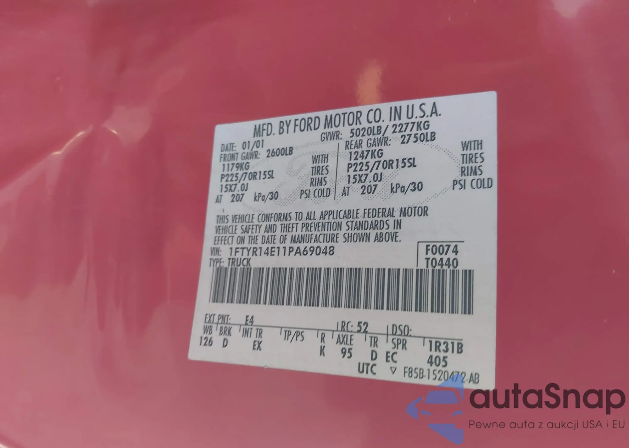 LOT: 41320778 VIN: 1FTYR14E11PA69048