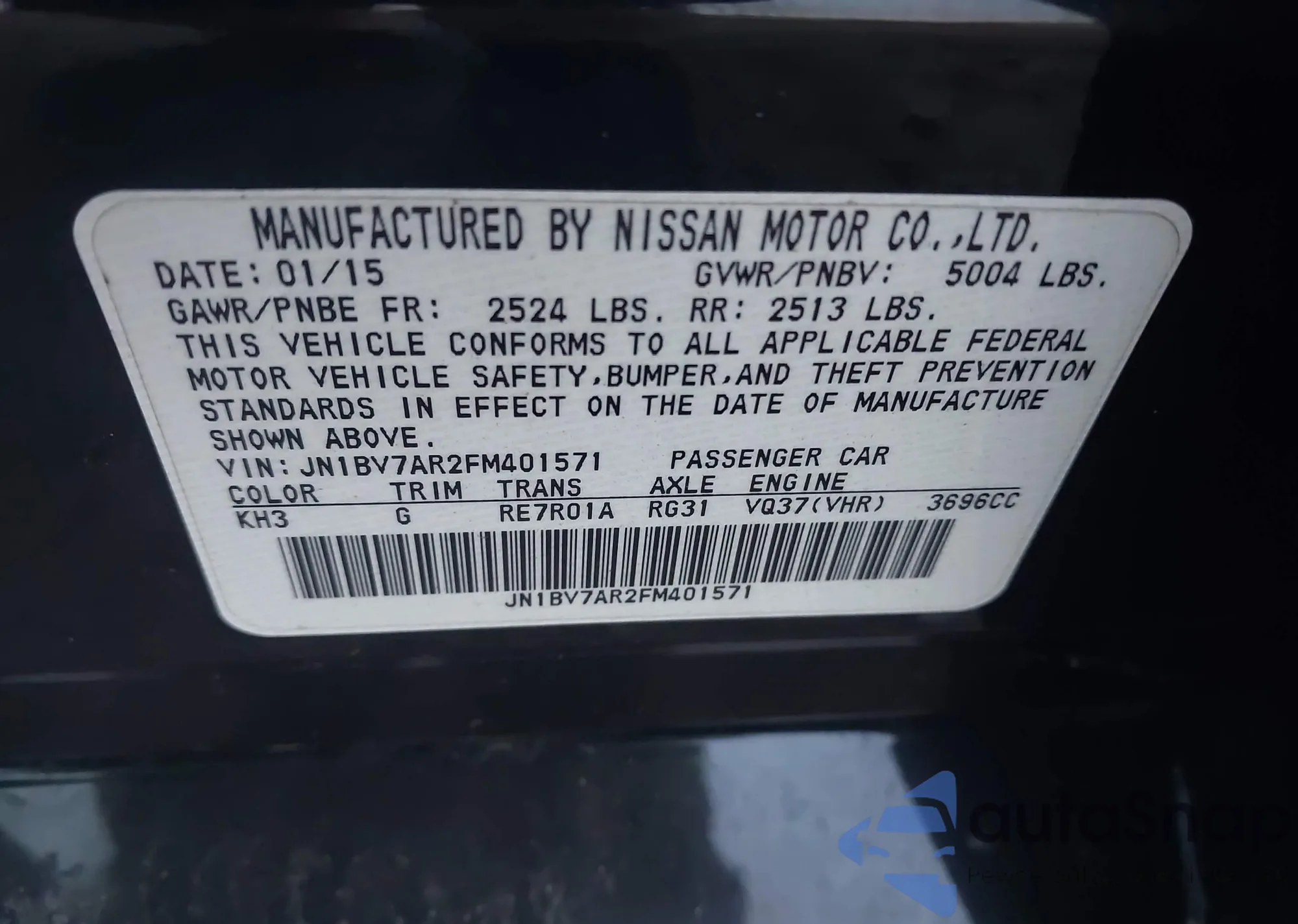 LOT: 40436374 VIN: JN1BV7AR2FM401571