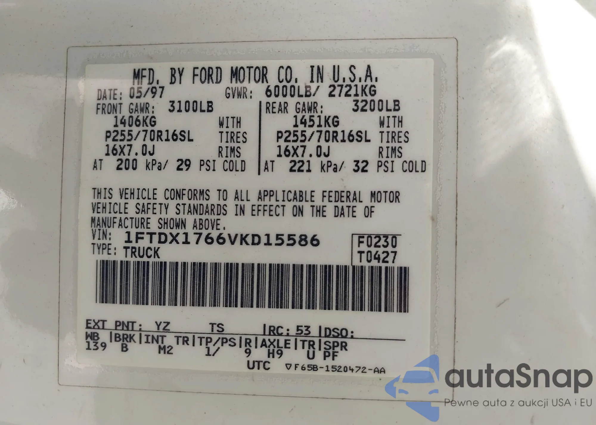 • VIN 1FTDX1766VKD15586