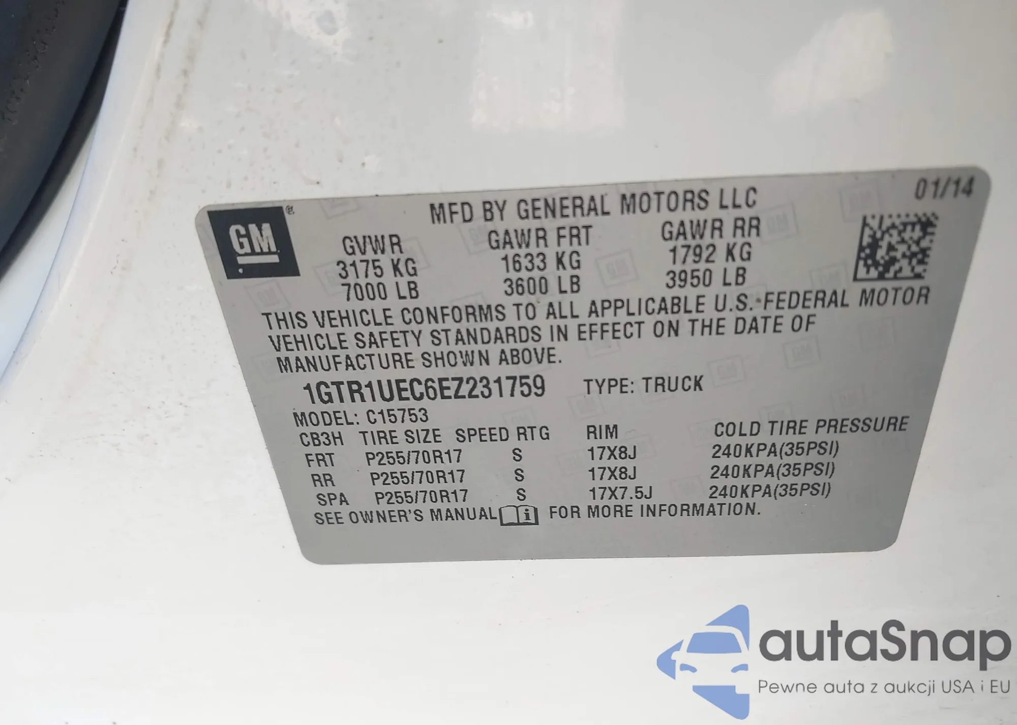 LOT: 40651304 VIN: 1GTR1UEC6EZ231759