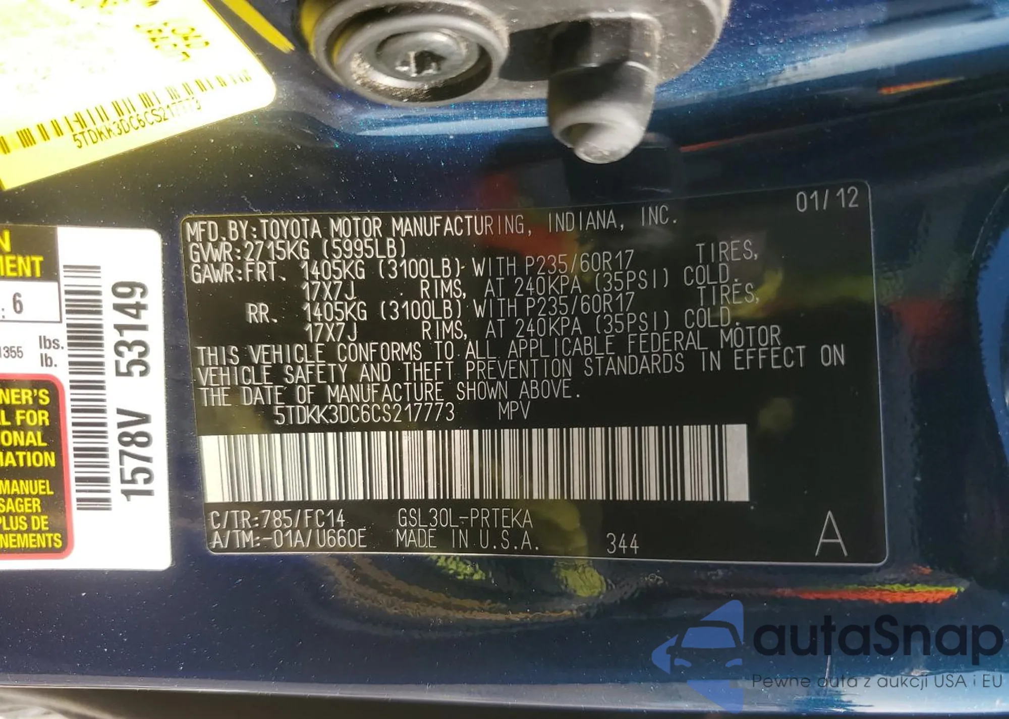 LOT: 85888424 VIN: 5TDKK3DC6CS217773