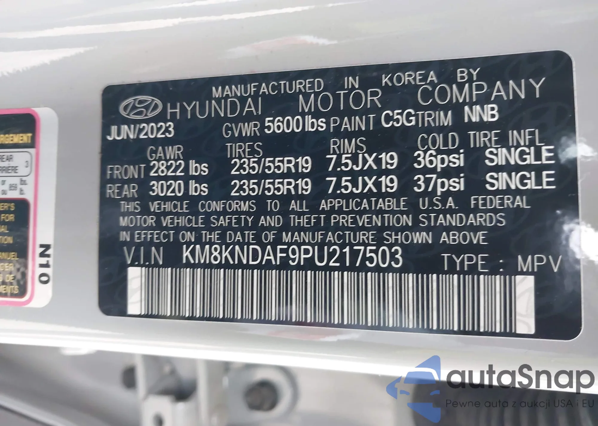 • VIN KM8KNDAF9PU217503